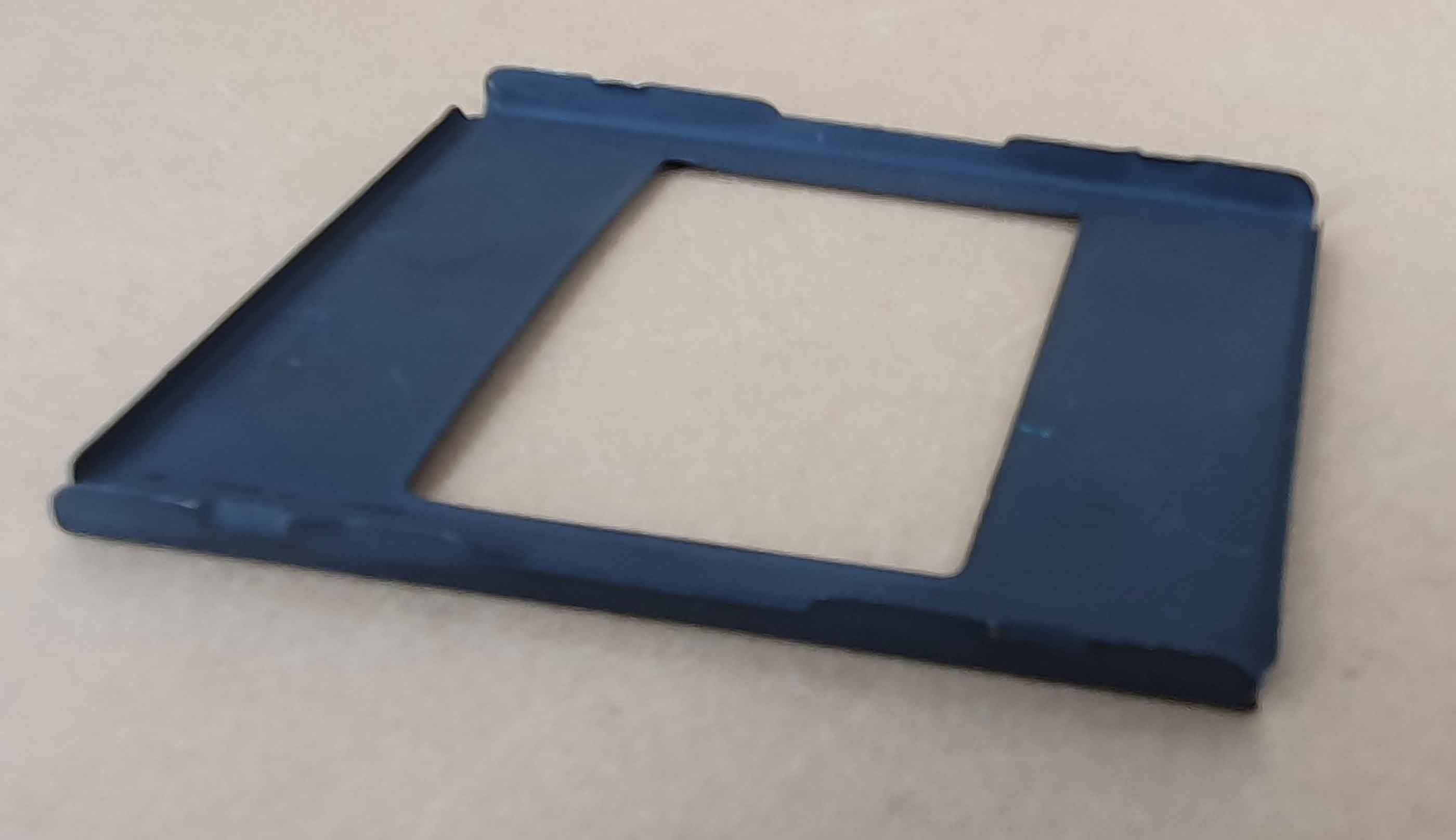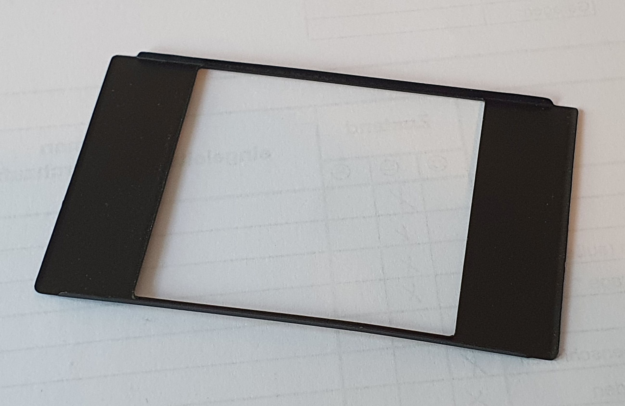 dann will ich mal etwas mutmaßen. Die Maske wird ihrer Form nach zu urteilen über die Filmführung (Bildbühne) gesteckt und nicht eingelegt. Solche Formatmasken finden sich häufiger bei Kameras, wo die Filmführung herausgenommen werden kann – am ehesten wohl bei Boxkameras.