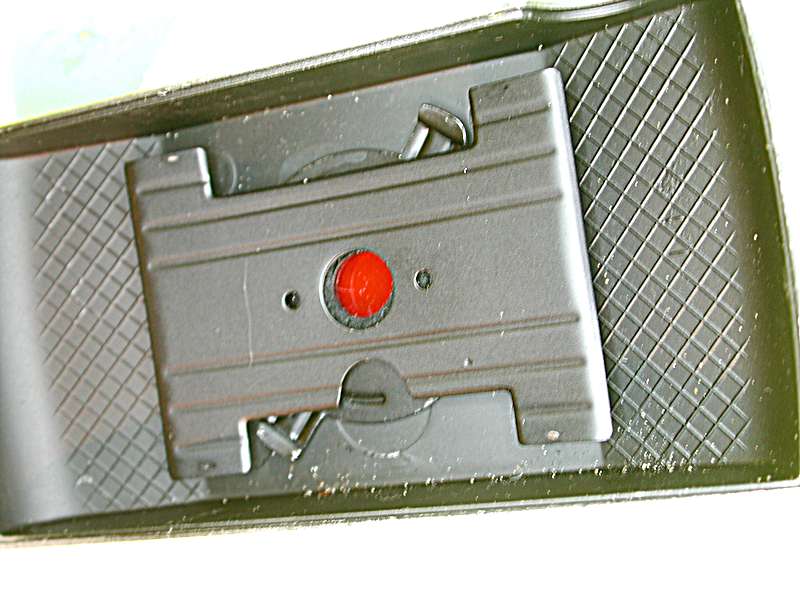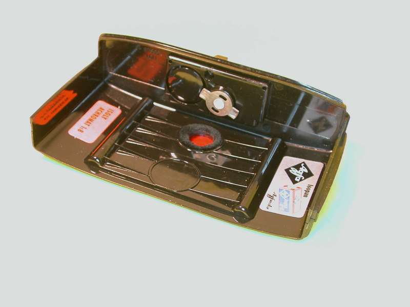 auch die Click-1 hat natürlich das gewölbte Filmfenster, verfügt auch sie ja nur über eine Meniskuslinse. Ich trage nur ein Bild ihrer Rückwand bei, auf dem die konkave Wölbung unverkennbar ist. Die Rippen haben darüberhinaus Auswölbungen links und rechts der Filmbühne, die den Film straffen. Agfa hat sich also nicht auf die Straffung des Films verlassen, um den Film an das gewölbte Filmfenster anliegen zu lassen.