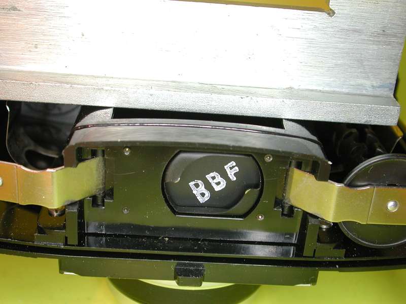 Am aufwendigsten unter meinen Kameras ist die Konstruktion bei der BElla46 ausgeführt. Sie hat nicht nur eine schwach gewölbte Filmbühne, sondern auch eine federnde konkave Andruckplatte aus Metall. Bei ihr wird der Film ebenfalls mit der Schicht über die Plastik-Kanten der Filmbühne gezogen.