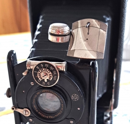 Erreicht wurde das, in dem dieser Sellar-Sucher ohne Linse und Okular auskam. Lediglich ein 45 Grad zum Motiv gekippter Spiegel war nötig- Dieser Spiegel allerdings war sattelförmig gebogen, eine Kombination aus konvexer und konkaver Wölbung. Das führte zum aufrecht stehendem und seitenrichtigen Sucherbild, hell kontrastreich scharf vom Brillant-Sucher-Typ.