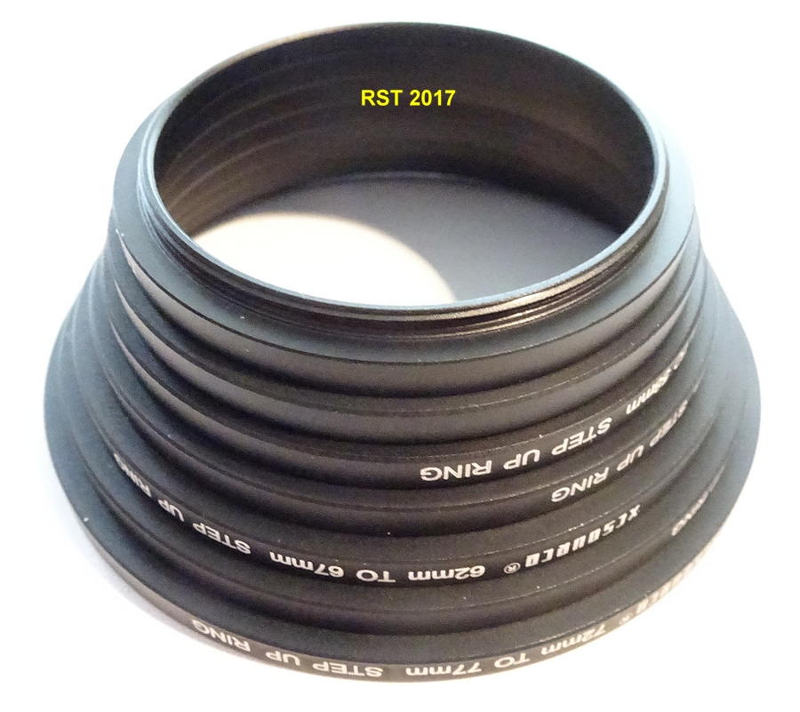 Das Set kann 49 zu 52, 52 zu 55, 55 zu 58, 58 zu 62, 62 zu 67, 67 zu 72 und 72 zu 77 adaptieren. Damit kann man auch durch Kombinationen oft weiterkommen.