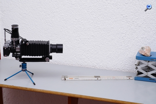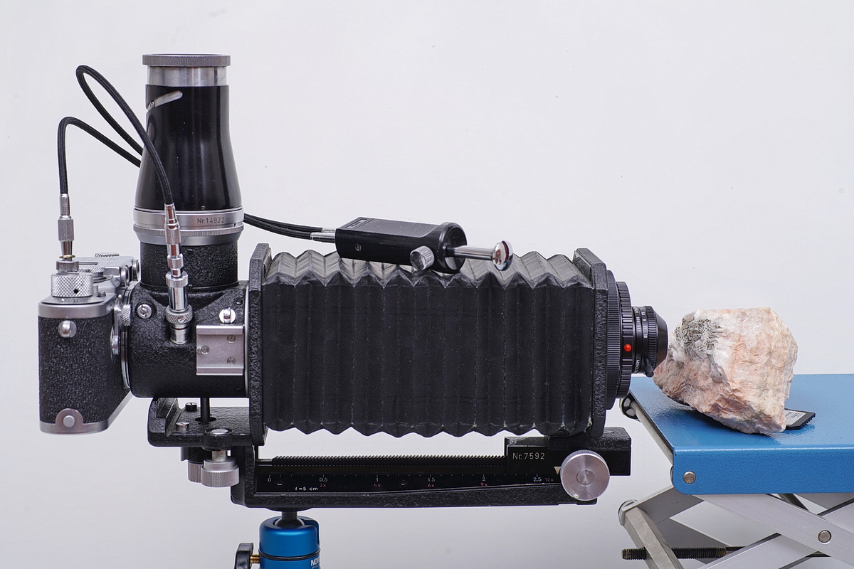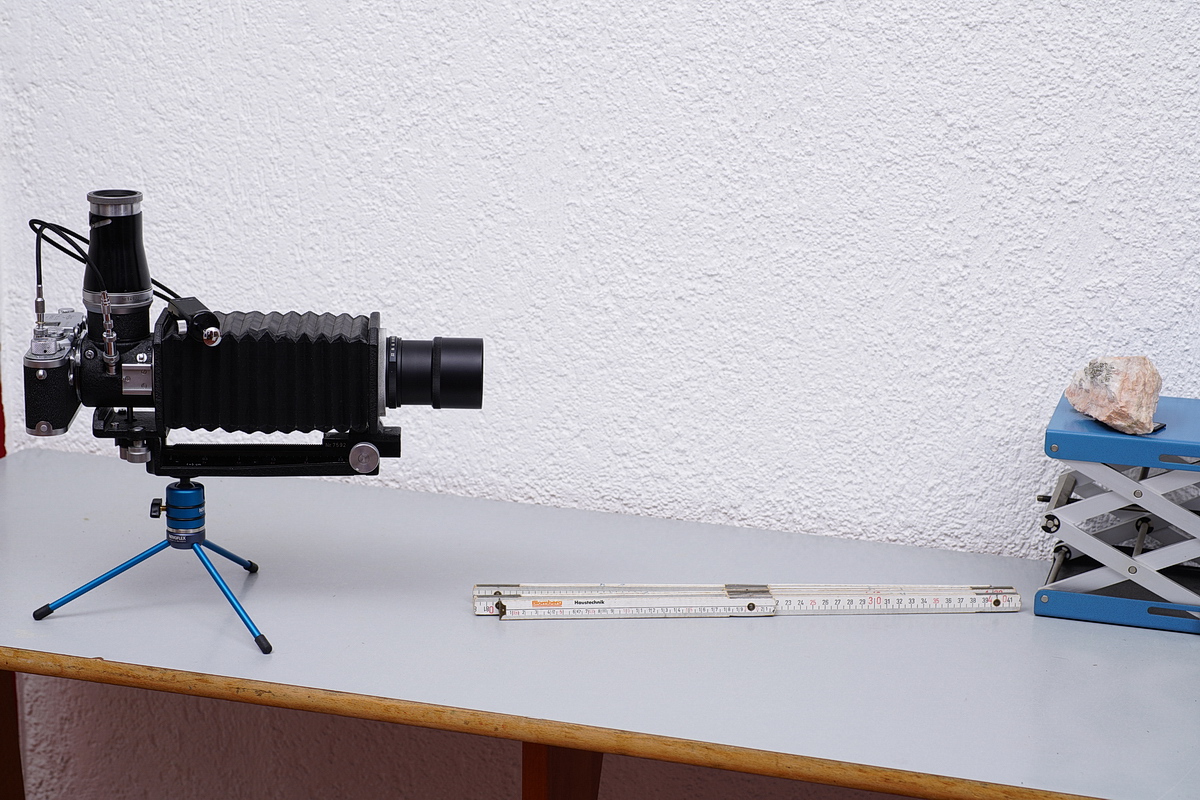 Hallo, die Nahaufnahmegeräte mit Zwischenringen oder Vorsatzlinsen zur Leica sind alle auf Stäbe zur definierten Entfernungseinstellung angewiesen. Erst mit der Einführung des Visoflex (1951-1959) gab es die Möglichkeit, mit einer Leica mit Hilfe einer Mattscheibe zu fokussieren. Ich stelle hier den heute Visoflex I genannten Vorsatz mit Balgengerät vor. Je nach Objektiv kann ich damit von unendlich bis etwa zum Abbildungsmaßstab 10:1 fotografieren, also alle Bereiche von Landschafts- über Nah- bis zur Makrofotografie erfassen.