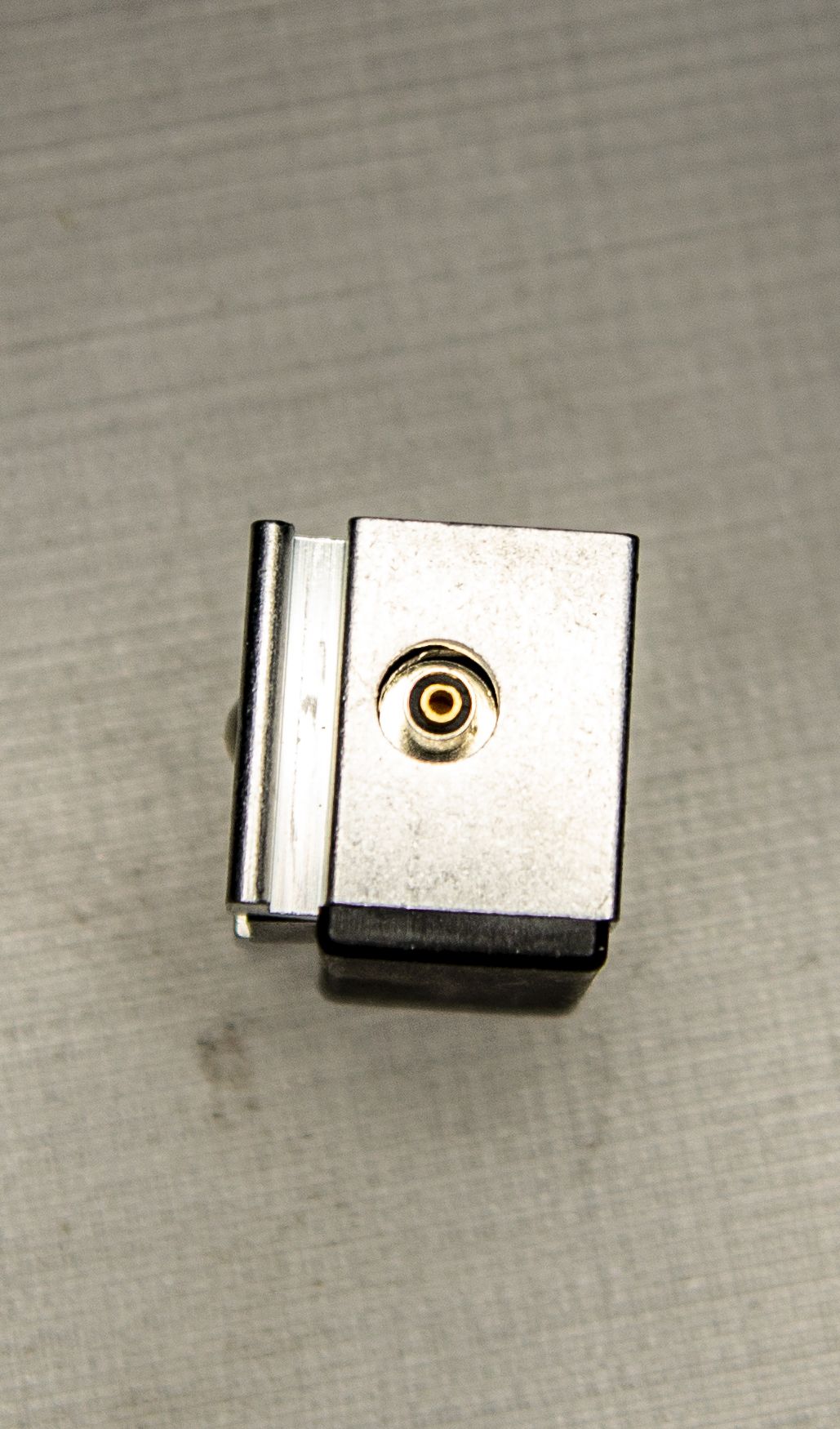 Der nächste Schritt war die Einbeziehung eines elektrischen Mittelkontakts in den Zubehörschuh. Der Gegenpol für den Blitzstromkreis war die eigentliche mechanische Halterung des Zubehörschuhs.
