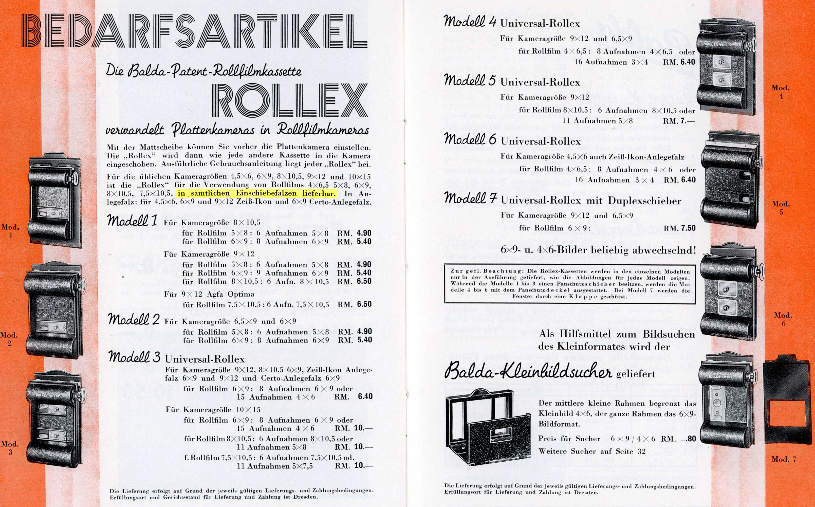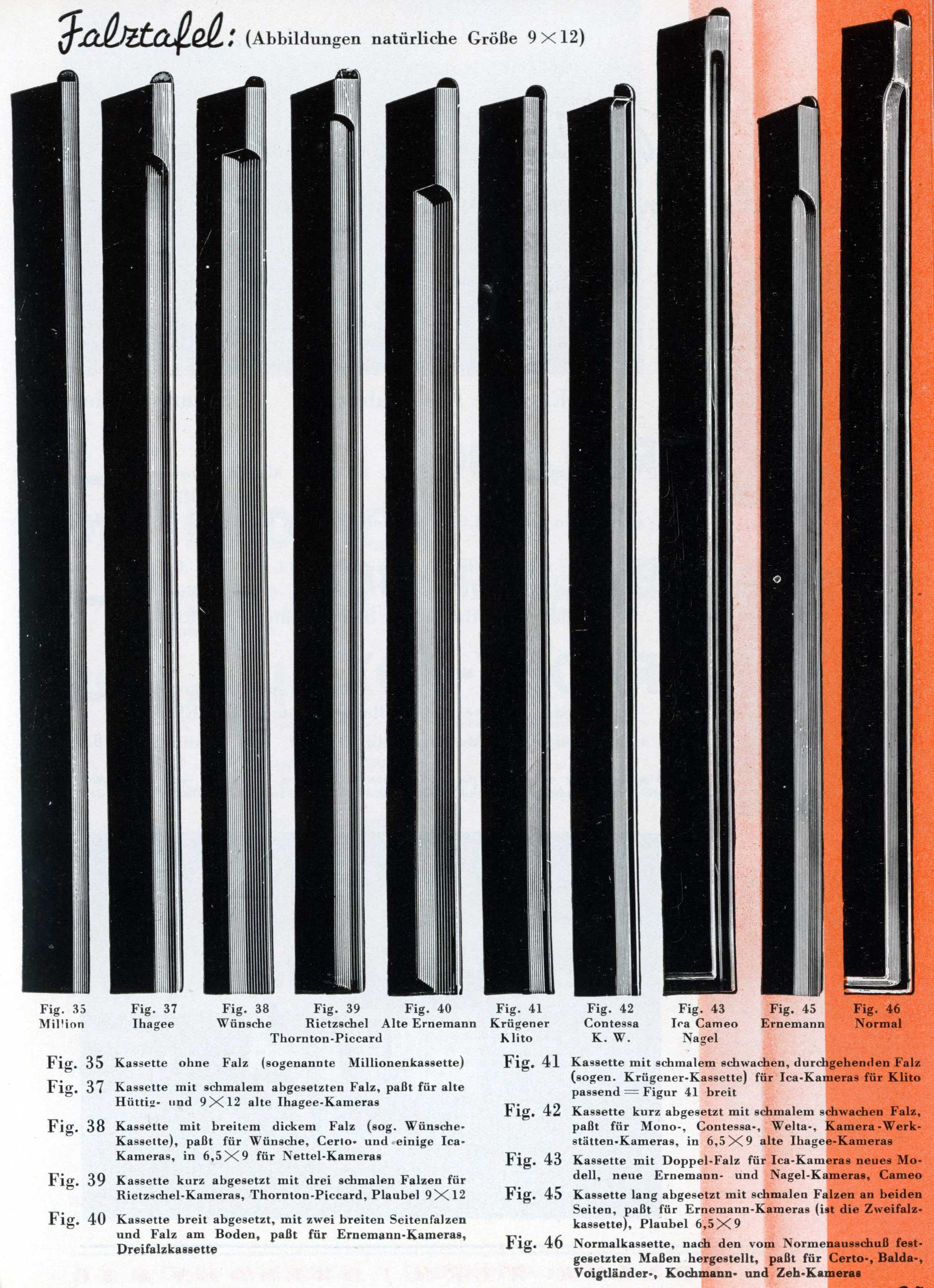 Hallo Axel zur Rollex kann ich nichts sagen da ich darüber keine Unterlagen habe Rada hat ja auch diese Rollfilmkassetten hergestellt und die hatten 11 verschiedene Falze und mit den verchiedenen Formaten 21 Typen im Angebot. Die Rada Liste ist hier im Forum zu finden.