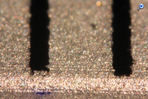 Aufnahme zweier mm-Teilstriche auf einem Alulineal: