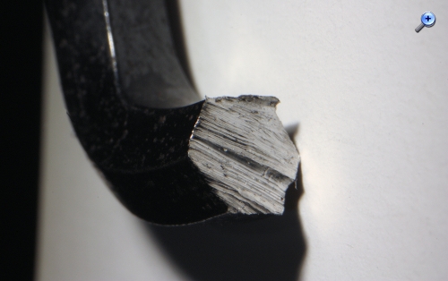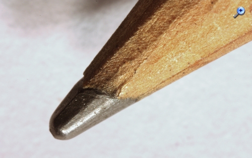 Hier der abgesägte Inbusschlüssel, um den Kugelkopf fest zu schrauben: und weitere Versuche: Stern auf dem 1 Cent-Stück: Bleistiftspitze: Die Schärfentiefe läßt bei so extremen Makroaufnahmen zu wünschen übrig, ein Programm, um aus mehreren gleichen Aufnahmen unterschiedlicher Schärfeebenen eine mit höherer Schärfentiefe zu machen, habe ich bereits runtergeladen, aber noch nicht ausprobiert.