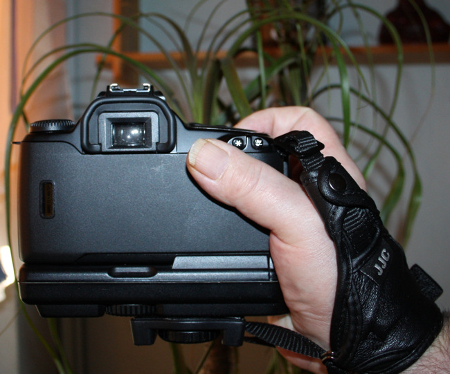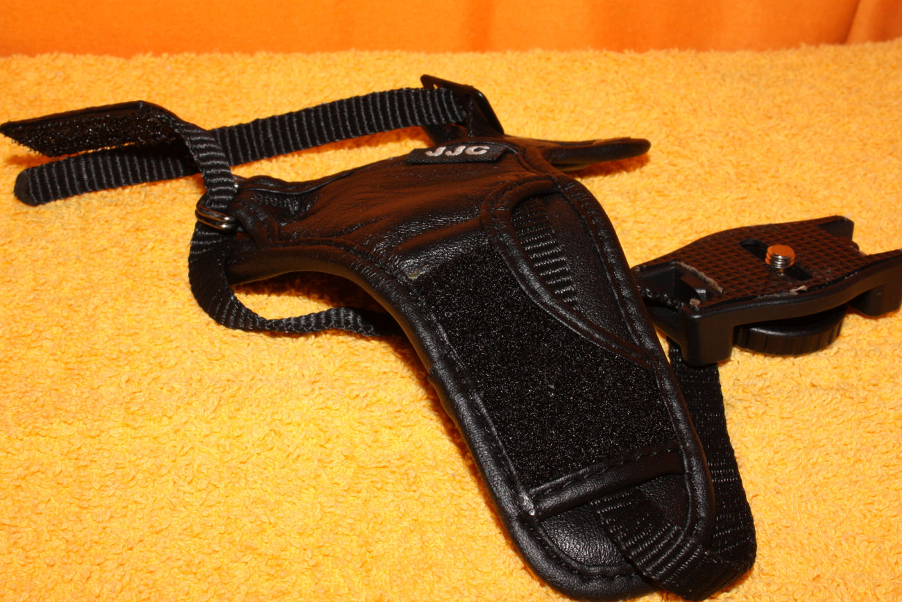 Dieser Haltegurt für Spiegelreflexkameras ist eine hervorragende Entlastung für den Fotografen. Die Kamera sitzt perfekt in der rechten Hand, alle Bedienungselemente für die rechte Hand sind leicht erreichbar und das Beste ist, das die Kamera nicht ständig fest gehalten werden muß, damit sie nicht herunterfällt. Selbst wenn man sie vollständig loslassen würde, könnte sie nicht wegfallen. Für lange Sitzungen oder wenn an im Gelände unterwegs ist, ist der Haltgurt eine schöne Hilfe, das Arbeiten wird entschieden entspannter. Mit der Halteschraube, welche auch mit einem Stativgewinde versehen ist, und der Schlinglasche ist der Gurt ruckzuck angebracht oder wieder entfernt, ein Klettverschluß lässt sich so einstellen, das es nicht am Handgelenk spannt, die Kamera aber dennoch sicher sitzt. Mit dem Halteriemen lässt er sich an alle normalen SLR Kameraformate mit Halteöse für den Kameragurt und Stativgewinde anpassen, auch wenn zusätzlich ein Batteriegriff angebracht ist.