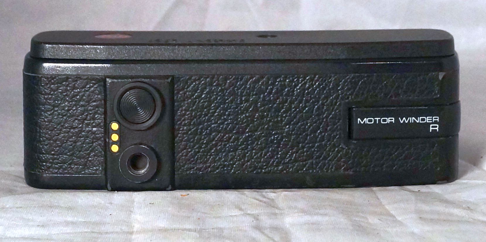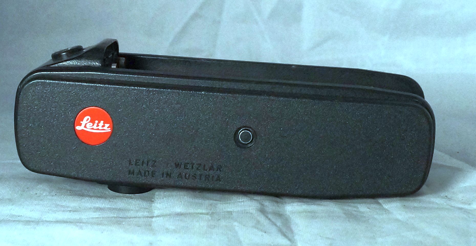 Hallo, Der Leica Motor-Winder ist der kleinere Bruder vom Leica Motor-Drive und gehört unten an die Leica-R-Kamers (ich hatte die R 6.2 mit Motor Drive). In die grosse Ausbuchtung innen wird der Akku eingeschoben (oder wahlweise der Anschluss des Netzteils). Wenn sie die Schlüsselschraube drehen, lösen sie die Kunststoffplatte oben. Hier sehen sie dann auch die Kontakte zur Kamera. In das Gewinde vorne wurde die Halteschraube des Haltegriffs geschraubt.