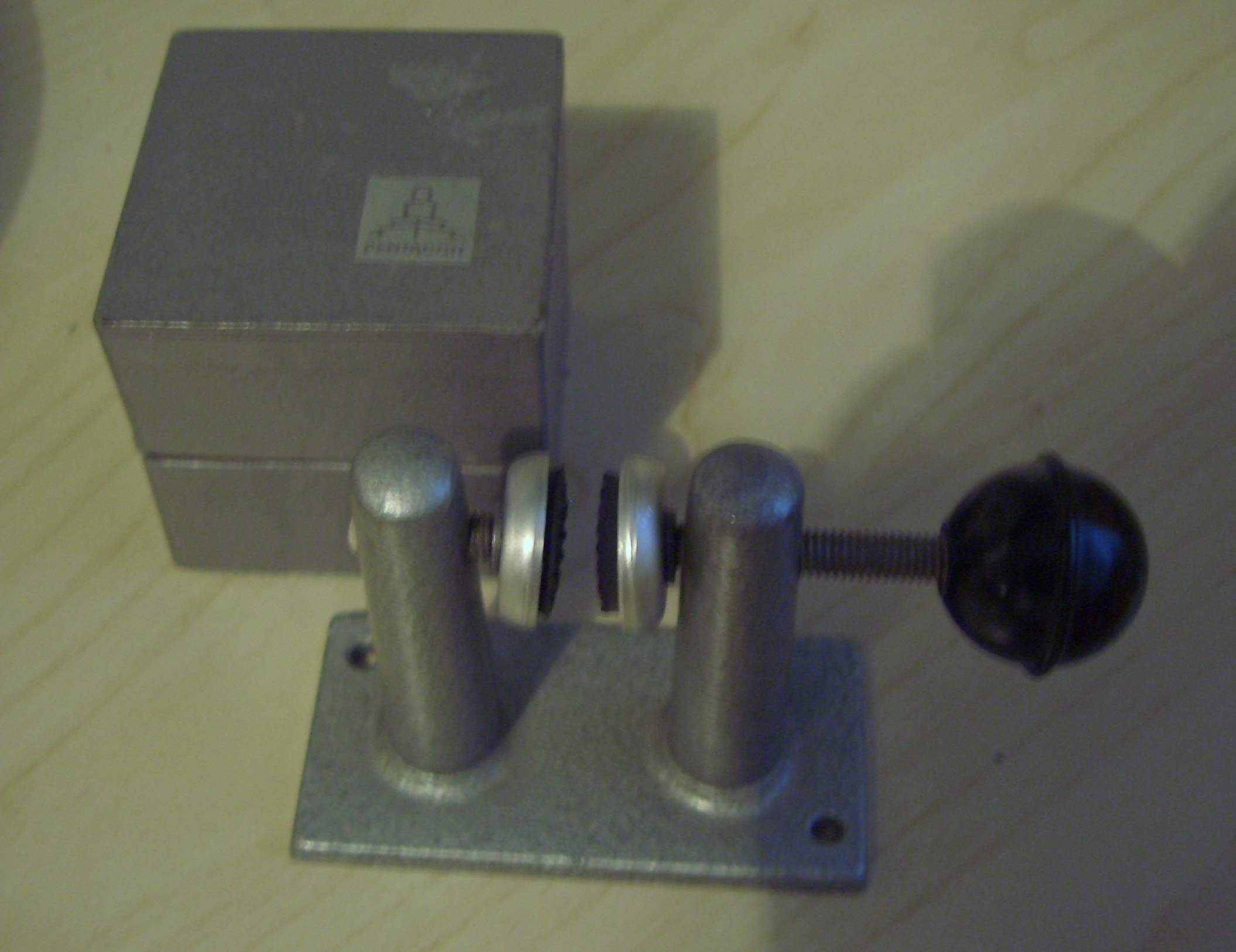 Opemus: ...hier die Aufklärung vom Großvater: Der "kleine Schraubstock" ist auch einer. Zu Urzeiten wurden Dia-Positive mit einer schwarzen Maske zwischen zwei Glasscheiben gelegt und anschließend mit einem nass klebenden Papierstreifen umklebt. Nach dem Auflegen der Maske, Einlegen des Dias, Zuklappen der Maske wurde dieses "Paket" im "Schraubstock" eingespannt. darin ließ es sich drehen und einigermaßen einfach umkleben. Vorher scheiben putzen und gut trocknen nicht vergessen. Wenn solche Dias jetzt zum scannen kommen, gibt es Probleme bei der Feststellung der Schichtseite.