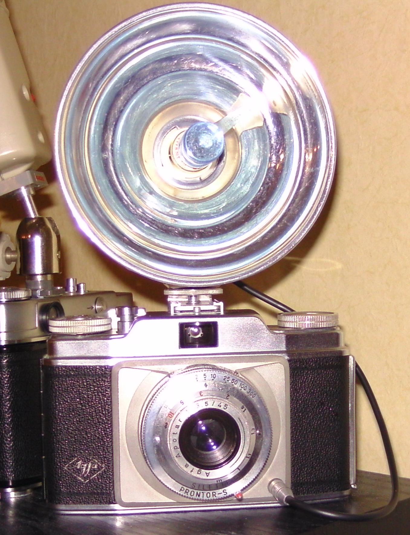 Auch mein Modell wird in Ehren gehalten, stammt es doch aus dem Nachlass eines guten Bekannten, der vor zwei Jahren leider verstarb. Bis auf das Vorlaufwerk, das unter 15° Celsius nicht mehr so recht will, funktioniert die Kamera noch wie am ersten Tag. Der aufgesteckte Blitz ist eine "Bacolet Batterie-Condensator Blitzleuchte Kleinstformat Made in Germany"