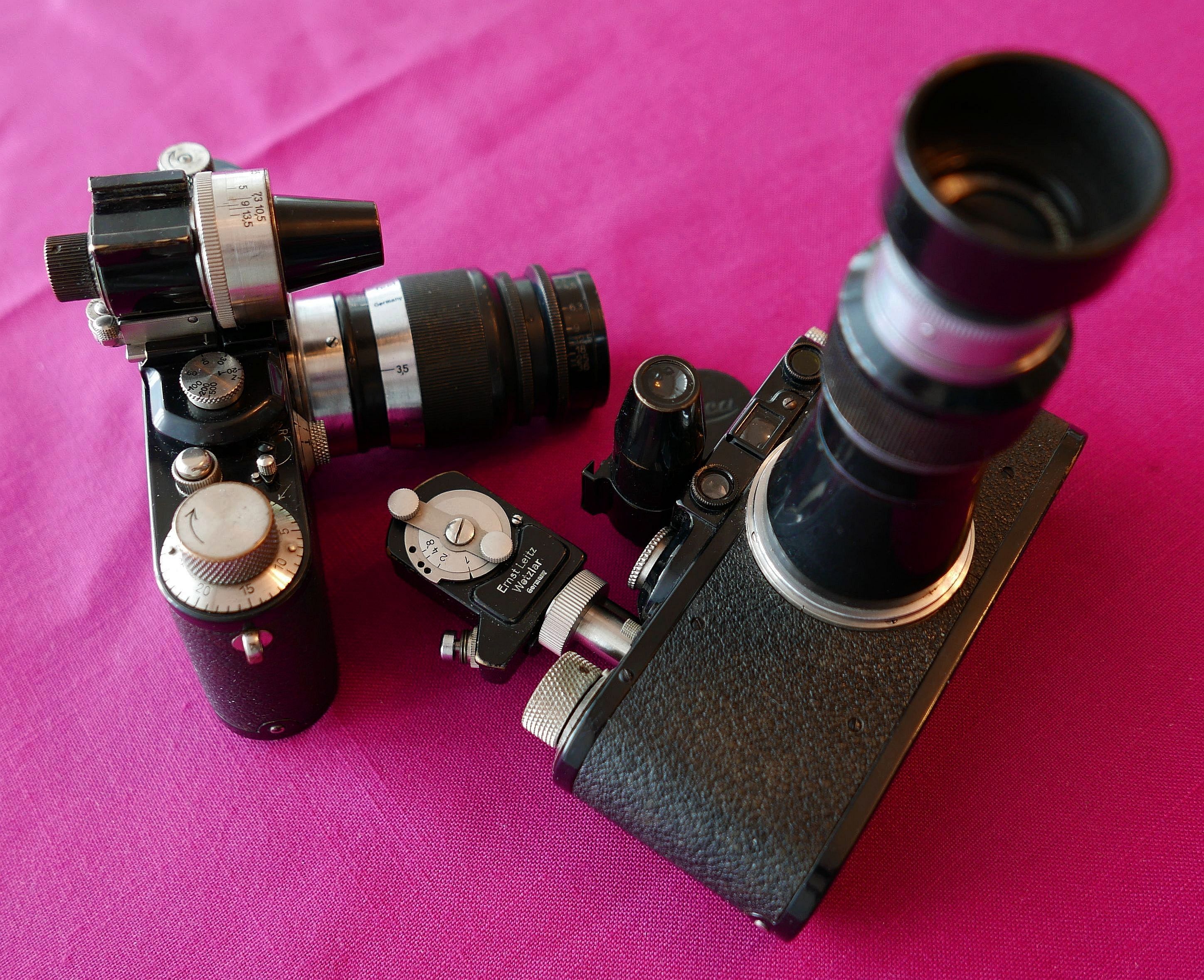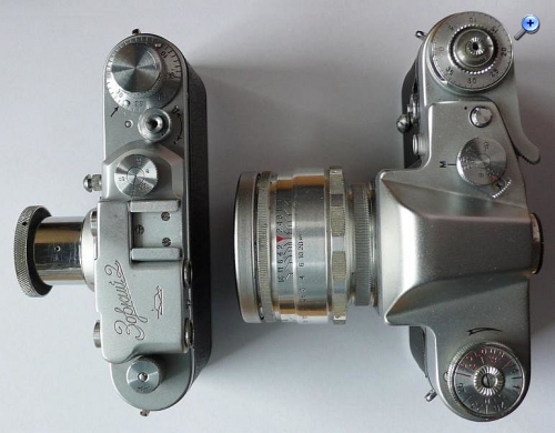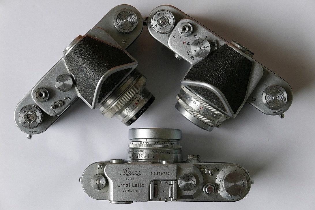 Die Bezeichnungen der Bilder geben ja bereits eine Hilfe. "LeoM" steht für die Leotax Merit, die sicher zu den schönsten Leica-inspirierten Kameras gehörte. Wie man aus dem einen oder anderen Bild hervorgeht, haben sowohl die Russen als auch die Japaner das sklavische Kopieren allmählich aufgegeben und sind selbstbewusst eigene Wege gegangen.