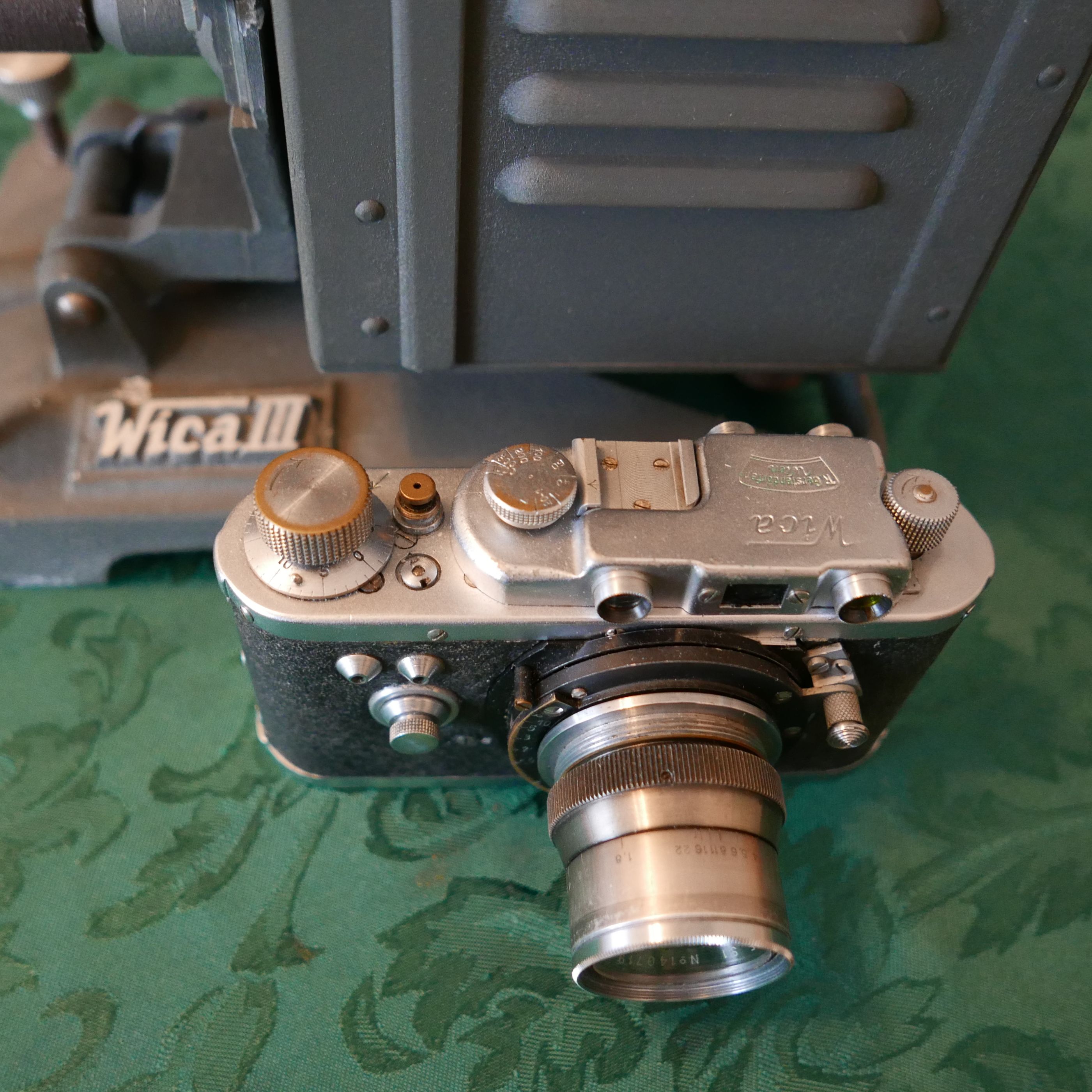 Man baute in der Wiener Kamerawerkstätte auch einen KB-Vergrößerer und Dia-Projektoren. Der hier gezeigte Projektor ist für Kleinbild und die beiden Objektive von der Wiener Fa. Kahles sind gewiss nicht minder selten als die Wica.