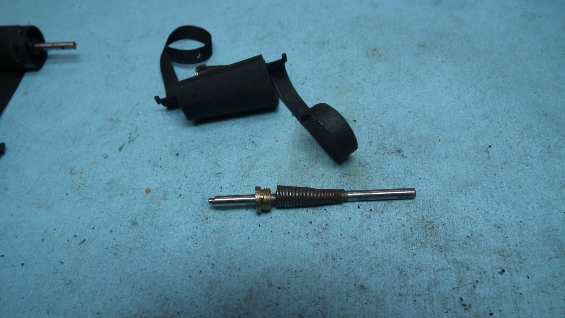 Das erste (nun folgende) Bild zeigt die zerbrochene Feder, das zweite die provisorische Feder, die mein Freund angefertigt hatte. Das dritte Bild zeigt die exakte Nachbildung. Ich habe auch die originale Sperrklinke wieder eingebaut und sie oben so nachgebildet (gelötet), dass sie wieder greift. Wenn dieser Aufwand keine Liebe ist...