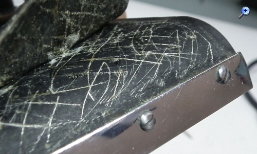 Die zwei letzten Bilder zeigen die liebevolle Handarbeit der Fa. Gerstendörfer unterm Leder. Selbst auf der verchromten Haube mit dem Namenszug kann man auf einigen Exemplaren die Schleifspuren einer groben Feile erkennen. Die Verchromung war wohl nicht ganz so dick und füllend wie vielleicht geplant.