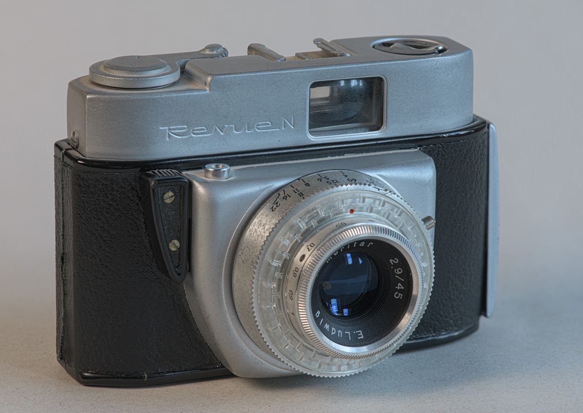 Hallo Rainer, da habe ich noch ein Exportmodell für die Quelle-Fotoamateure - die Revue N. Sie ist auf jeden gut in Gebrauch gewesen, ihrem Aussehen nach. Sieht aus wie ein Vorläufer der Beirette VSN. Läuft auch mit der 135iger Kleinbildpatrone / 36 Bilder. Technische und Objektivdaten wie alle Beiretten.