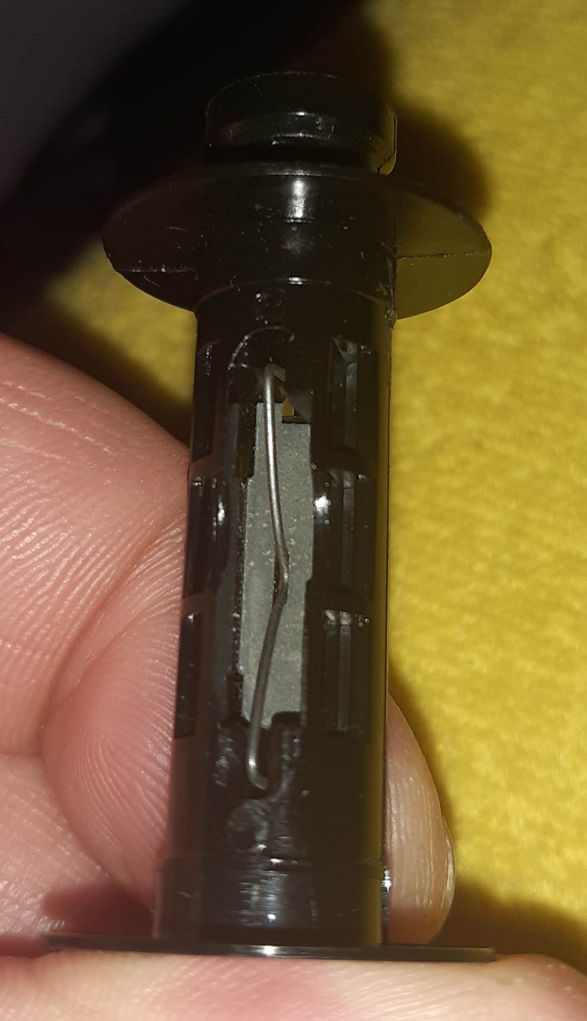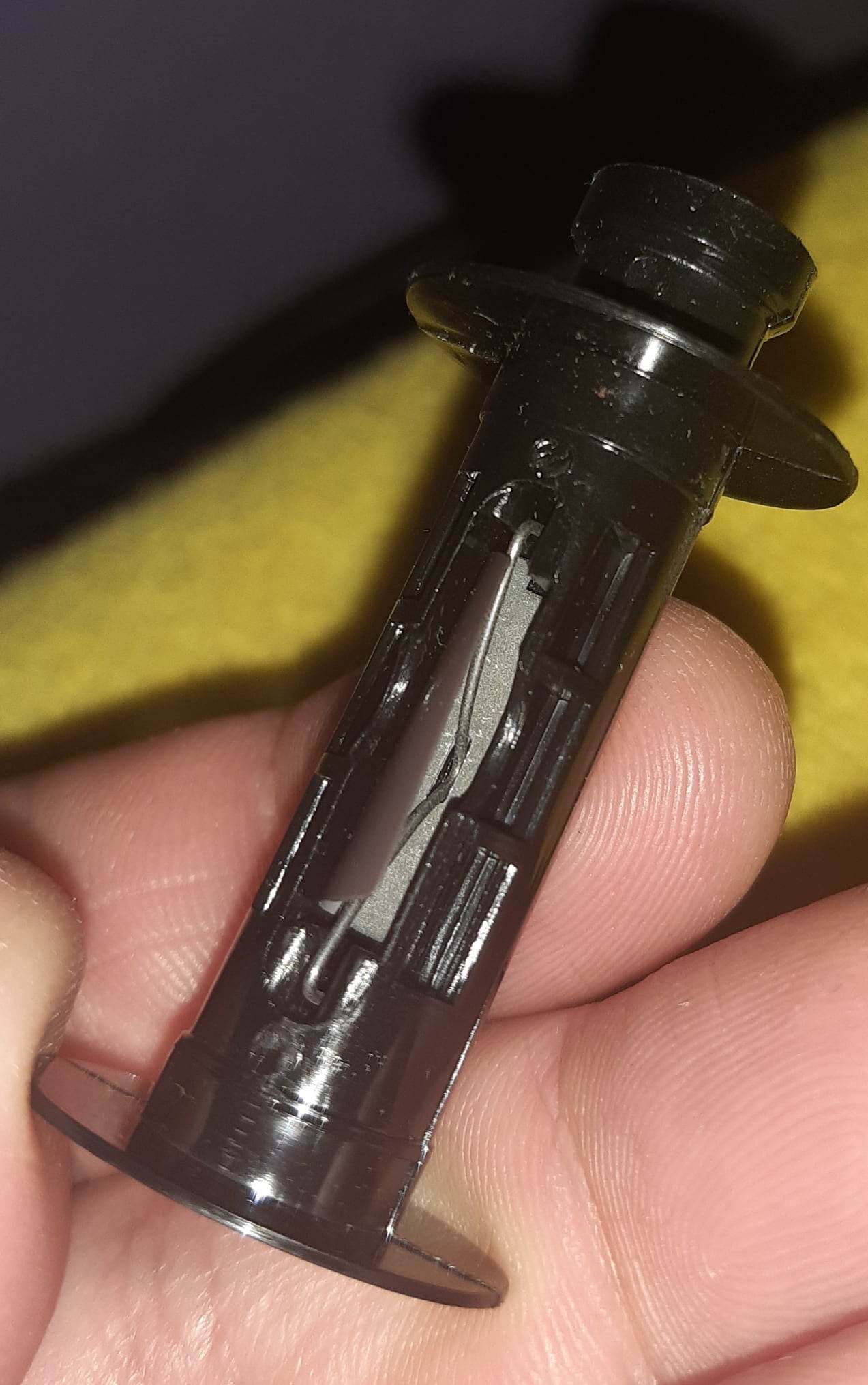 wie wird der Film in der T Patrone an der Spule befestigt/eingehängt. Anbei ein Foto diser Spule aus dem Robot von Kai. Ein Draht ist da mittig zu sehen und tieferliegend eine Art Federblech. Muß der Film speziell zugeschnitten am Anfang ? Mich irritiert diese Spule etwas. Wie gesagt, es ist die Spule aus Patrone T, also soll hier der neue Film aufgespult