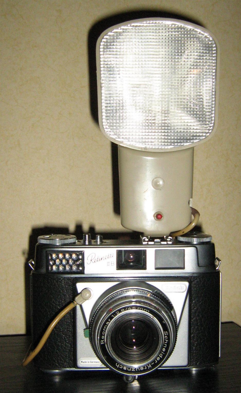 Zum Blitz auf dem Bild von Martin: mit großer Wahrscheinlichkeit handelt es sich um den Lampenkopf des Porst Hapotron III. Das Gerät hatte ein vom Blitzkopf getrenntes Energieteil mit NiCad Akkus und eine Verbindung mit einem Spiralkabel. Auf dem Bild oben ist die Ausnehmung für das Kabel oberhalb des Synchronkabels zu erkennen. Mein Vater hatte diesen Blitz und ich hab viele Aufnahmen damit gemacht. Photo Porst bewarb das Gerät wegen des "Vorblitzes" (Roter Knopf auf dem Bild von Martin). Man konnte einen schwachen Blitz manuell auslösen - die photographierten Personen sollten glauben, es sei schon vorbei und entspannnten sich-erst dann drückte man den Auslöser und machte das Bild mit synchronisiertem Blitz. Leider besitze ich kein gutes Bild des Gerätes von 1960 mehr.
