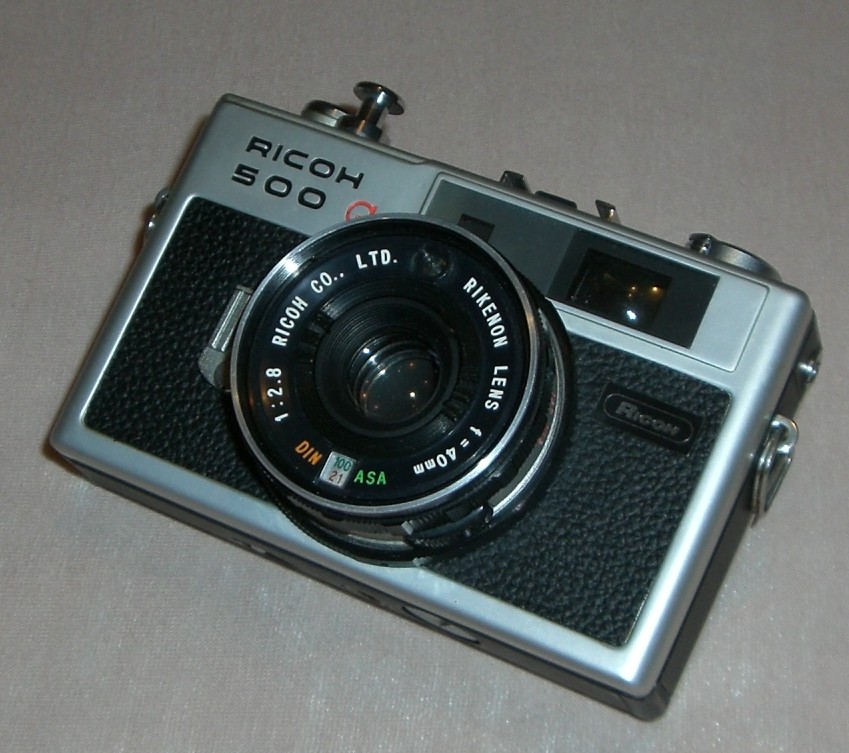 Hersteller Ricoh Co., Ltd., Japan Made in Taiwan Typ 500 G Einführung 1972 Ausverkauf 1973 Neupreis Filmtyp Kleinbildpatrone 135 Optik Rikenon 2,8/40 Blendenbereich 2,8 - 16 Entfernungseinstellung 0,9 m bis Unendlich Fokussierung Manueller Fokus Bajonett Optik fest montiert Objektivschutz Aufsteck-Deckel Filtergewinde M46 Vergütung einfach Verschluß 1/8 - 1/500 Sek. und "B" Belichtungsmessung Blendenautomatik mit Zeitvorwahl durch CdS-Zelle, 15 - 30 DIN / 25 bis 800 ASA einstellbar Blitz Blitzschuh mit Mittenkontakt, PC-Buchse Sucher Umkehr-Galilei-Sucher, Meßwerknadel (Blendenanzeige), Bildfeld- und Parallaxmarkierungen eingespiegelt. Gekuppelter Mischbild-Meßsucher. Selbstauslöser mechanisch Stromversorgung 1 Quecksilber-Knopfzelle PX 675 Abmaße 115 x 82 x 57 mm Gewicht 420 Gramm