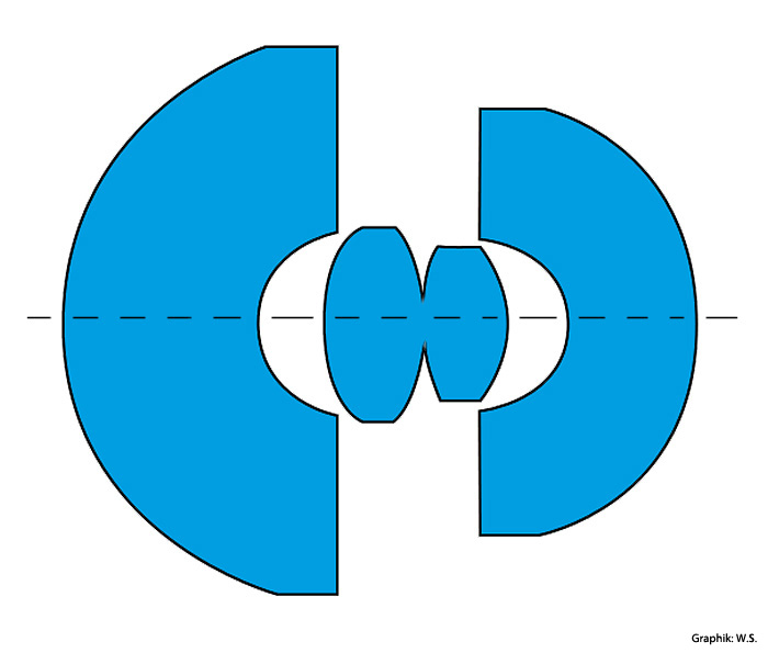 Querschnitt durch die Kamera mit dem versenkt eingebauten Hologon