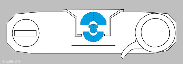Verschluss: Tuch-Schlitzverschluss 1 - 1/500 sek., B, T Blitzsynchronisation X, 1/60 sek. Blitzanschluss hinten neben dem Suchereinblick