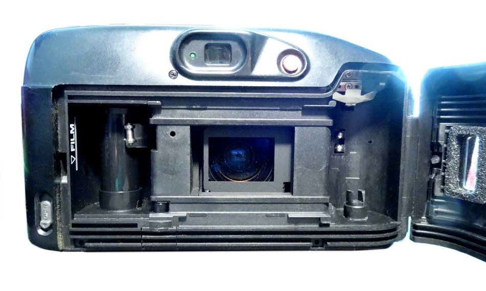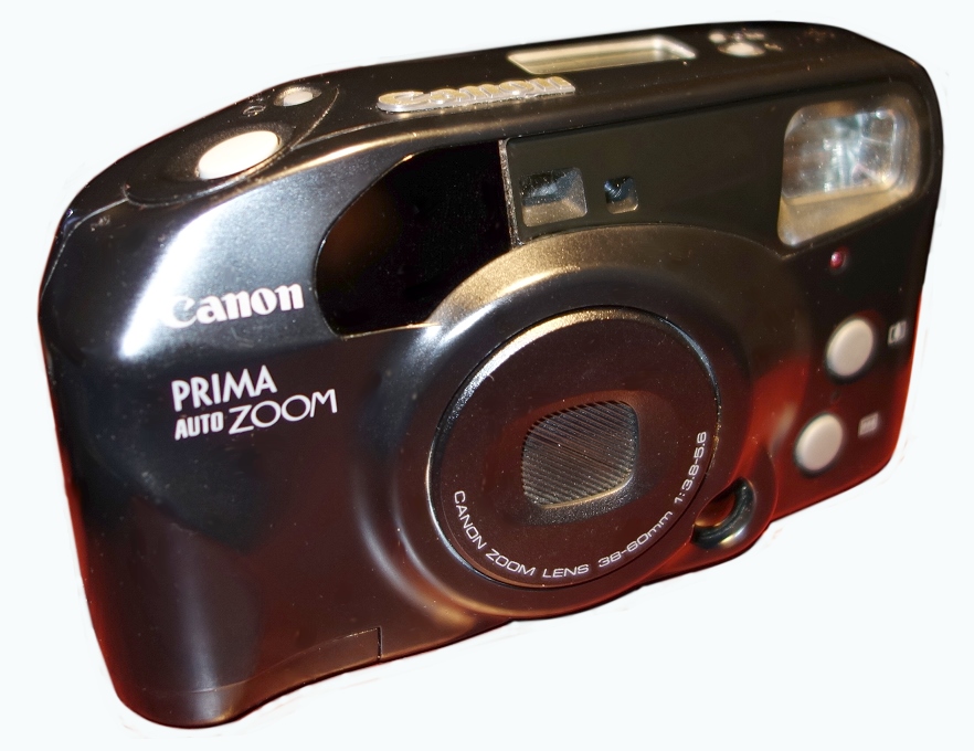 eine Kleinbildkamera mit "geschwungenen Linien", die von Canon auch als "SURE SHOT CAPTION ZOOM" und "New Autoboy" angeboten wurde. Die hier gezeigte Kamera ist eine Modellvariante, die nicht (betrachtet von vorn) am der rechten Seitenwand eine hervortretende Wulst zeigt.