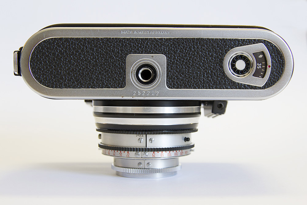 Die Kamera ist nach 50 Jahren noch voll funktionsfähig. Die Selenzelle liefert noch genügend Strom für die rot-grün Anzeige der Belichtungsautomatik.