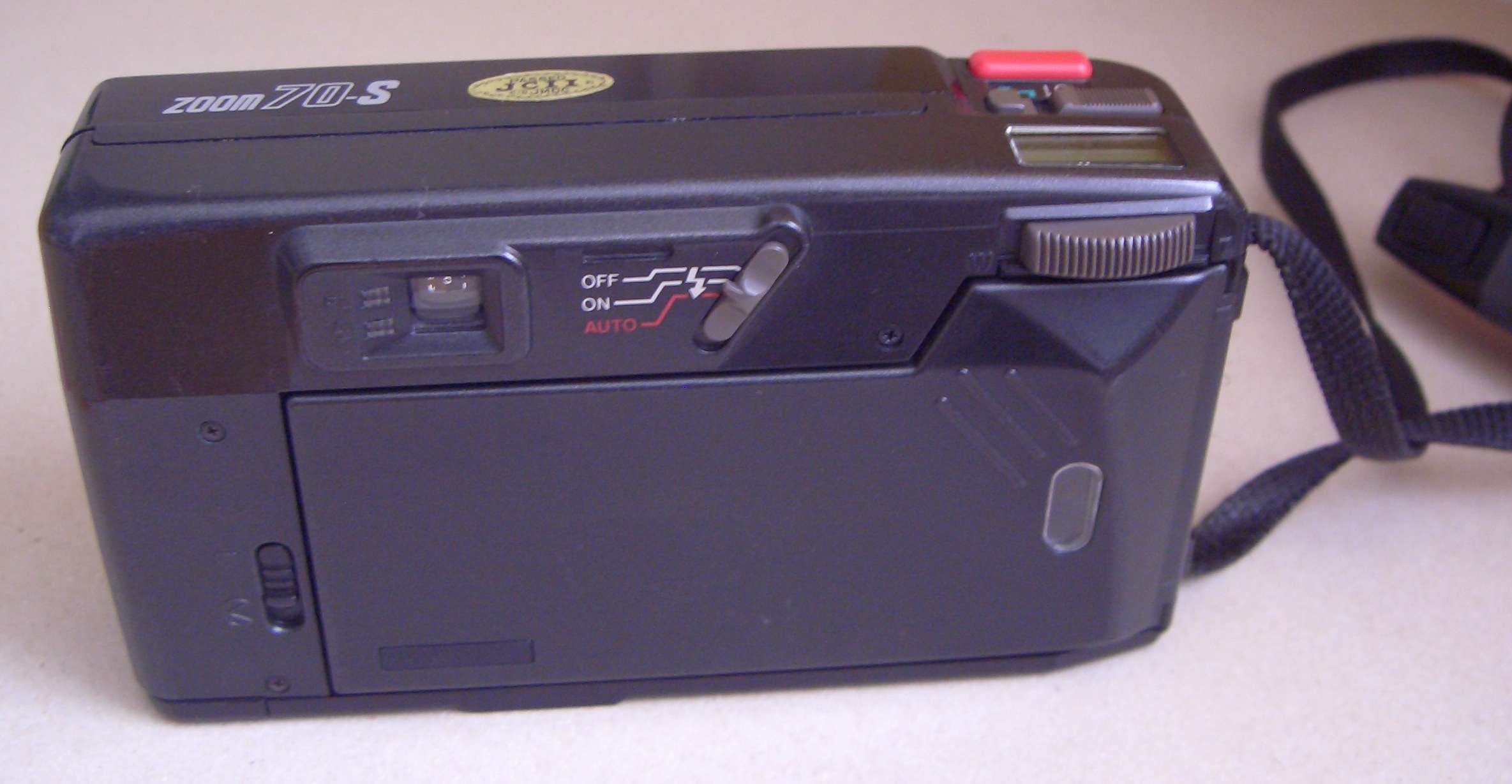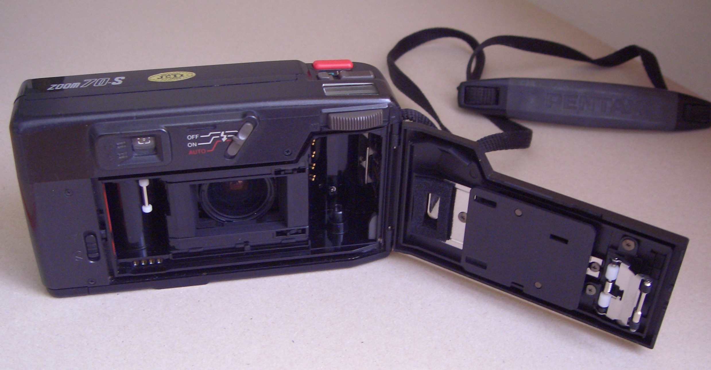Ich habe auch noch eine Pentax Zoom70s diese ist anscheinend die Nachfolgerin der Pentax Zoom70. Wie man sieht ist diese leider nicht mehr ganz so kantig. Leider ist bei meinem Exemplar eines dieser Metallplättchen nicht mehr da da muß ich mal sehen das ich eines zurechtschneide und reinklebe. So ich habe ein Metallblättchen zurechtgeschnitten und reingeklebt.Die Kamera funktioniert wieder.