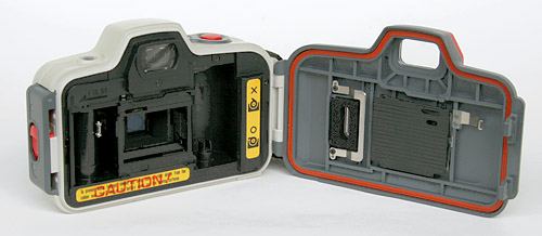 Eine weiche Gummidichtung im Deckel schützt das Innere der Kamera vor Schmutz und Wasser. Der große Sucher ist auch mit der Tauchmaske verwendbar.