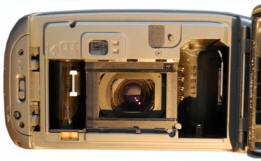 eine in diesem Markt-Segment sicher bemerkenswerte Kleinbildsucherkamera mit integrierter, herausnehmbarer Infrarot-Fernbedienung (die FB wird in eine Art Schacht an der Kameraseite eingeschoben). Wetterfest-Eigenschaften.