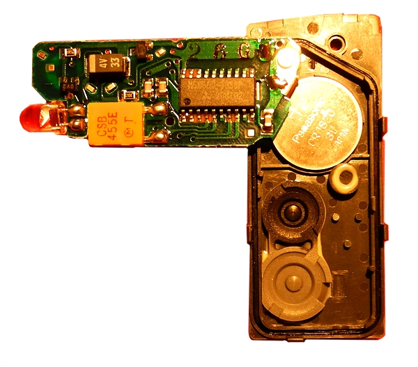 Die Fernbedienungs-Batterie ist nur durch Lösen zweier Minischrauben und Ausschwenken der Platine zu wechseln. Batterie: CR1620