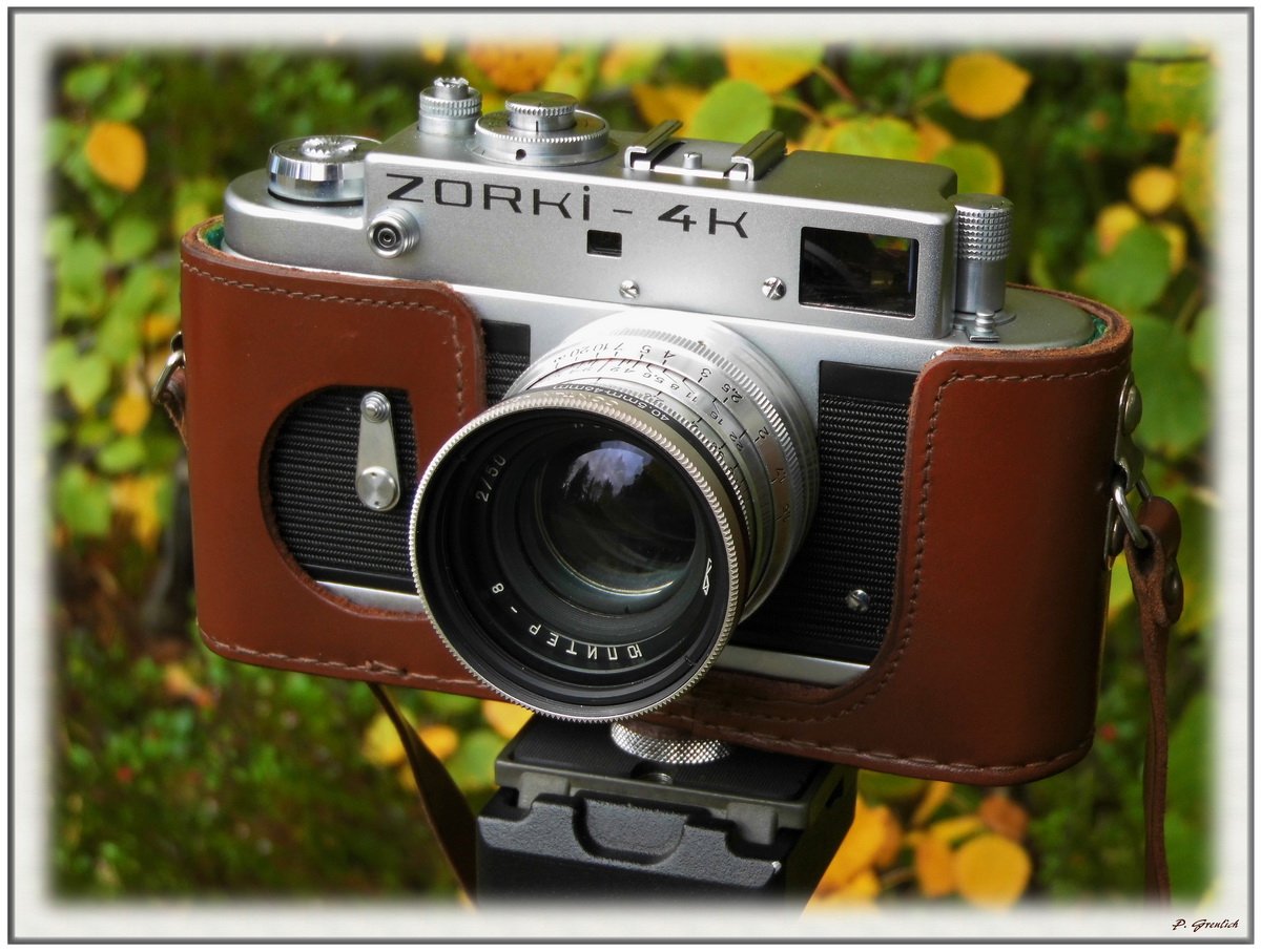 Die Zorki 4K ist die Weiterentwicklung der Zorki 4, der sie bis auf wenige Details entspricht. Der Schnellaufzugshebel für den Film macht dabei den Hauptunterschied aus. Sie ist nicht gerade klein für eine Meßsucherkamera. Ich besitze ausgewachsene Spiegelrefexkameras, die zierlicher sind.