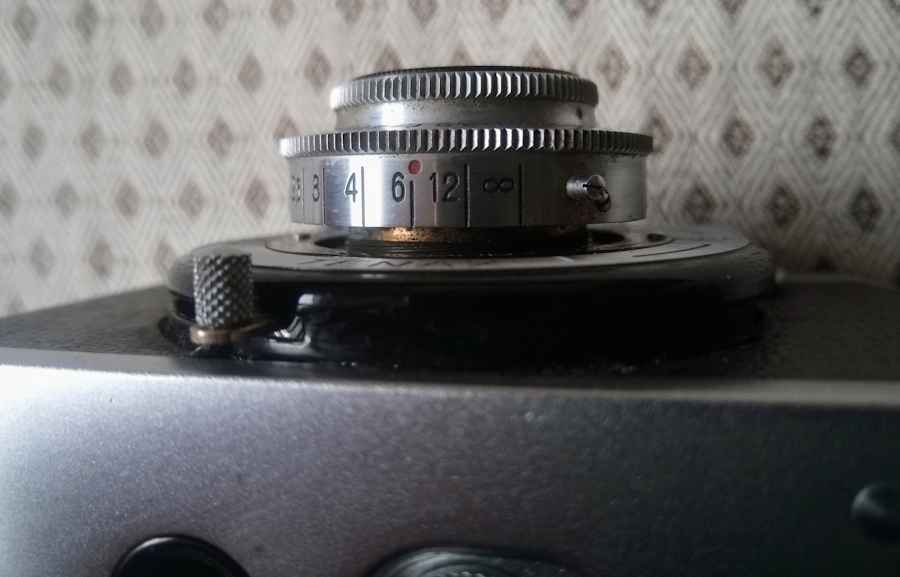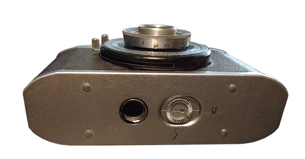 - Brennweitenangabe in mm statt in cm, bei der Vorkriegskamera waren Objektiv und Brennweite in weißer Schrift auf einem schwarzen Ring direkt am Objektiv zu finden.