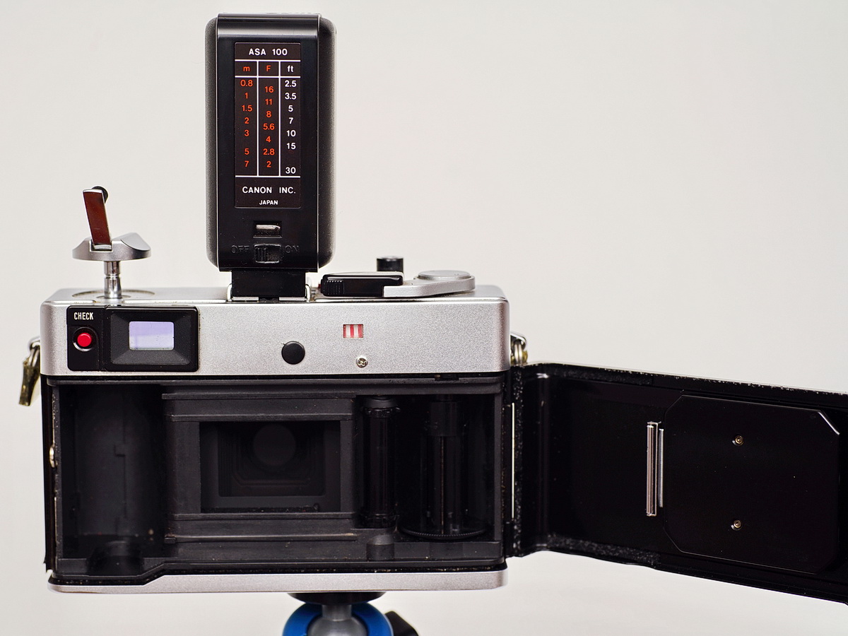 Blitzautomatik: bei aufgesetztem Blitzgerät Canolite ED wird die Belichtungsautomatik bei Einstellung auf „A“ automatisch mit der Entfernungseinstellung gekuppelt. Bei Verwendung von herkömmlichen Blitzgeräten können Leitzahlen 14; 20; 28 (für 21Din) eingestellt werden.