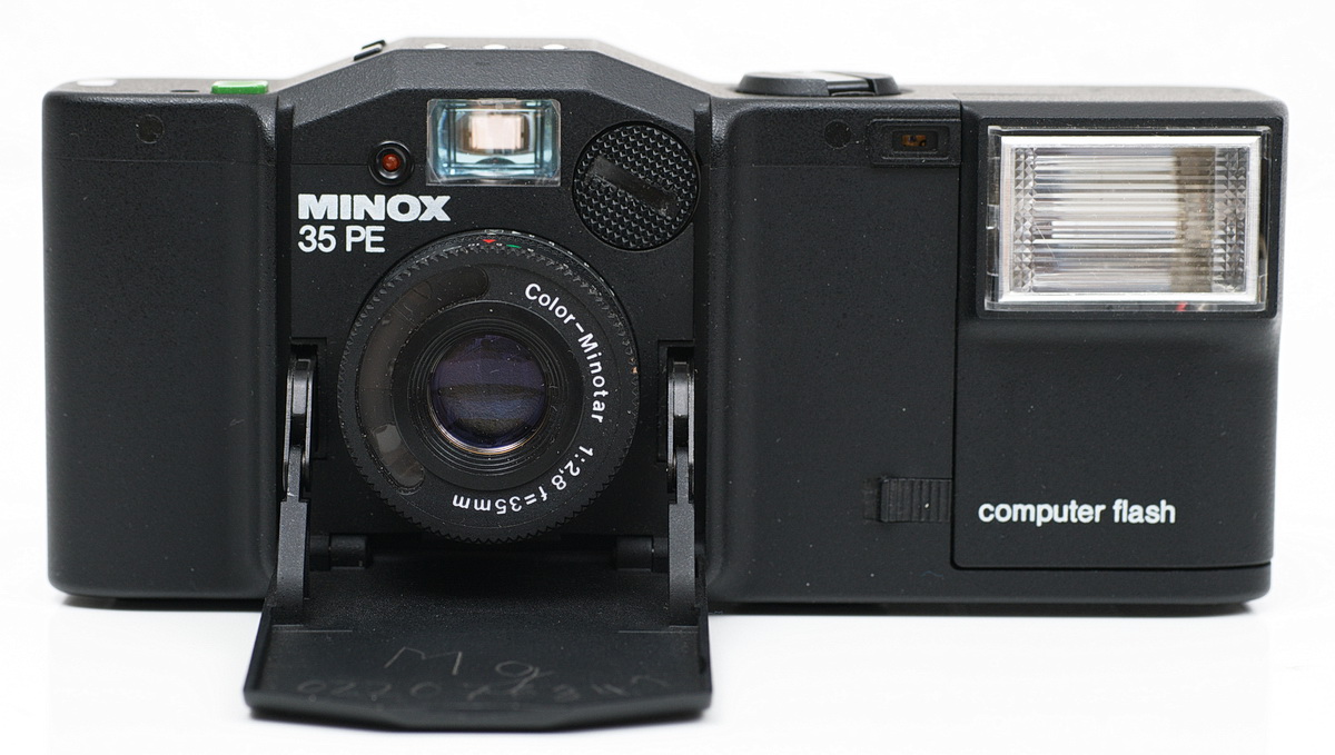 die Minox 35 PE von 1983 war schon bemerkenswert mit dem fest eingebauten Blitz. Sie ist wohl nicht in grossen Stückzahlen gebaut worden, da sie dem Publikum etwas zu gross geraten war. In jedem Fall ein gutes Sammlerstück.