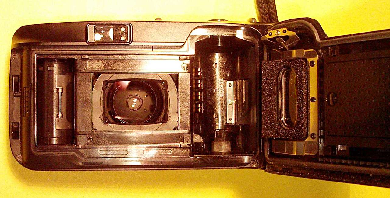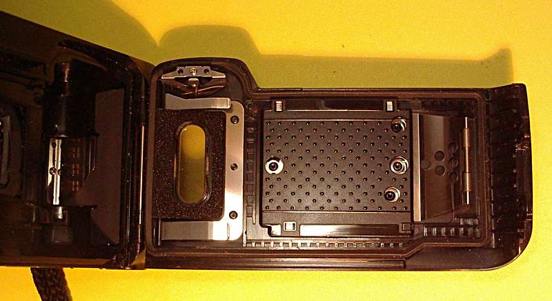 Sie brauchte auch keine Kassette. Ließ man einen herkömmlichen Kleinbildfilm in's Filmfach rechts fallen: