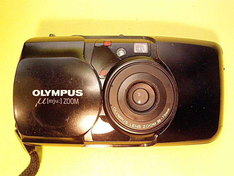Die Pocketkameras wurden immer größer, ihre Bilder nicht unbedingt besser. Aber es kamen Taschenkameras im 35mm-Kleinbildformat auf, z.B. die Olympus mju Zoom, die sich mit ihrer Keilform ihren Weg in jede Hosentasche zu schmeicheln oder notfalls zu drängen wusste und durch einen Schutzschieber auch kein Etui oder eine Bereitschaftstasche brauchte. Sie war im Gegensatz zu vielen Edelpockets klein genug, um ganz in eine Hosen- oder Jackentasche zu passen und auch nicht, wie viele der 35-mm-Taschenkameras, aus Platzgründen auf die Weitwinkelbrennweite 35mm, für mich ein Greuel, beschränkt. Was macht es da schon, daß ihr frühes Zoom-Objektiv neben ihrer nicht ganz so eindrucksvollen Bildschärfe eine erbärmliche Lichtstärke hatte, klappt doch bei ihr mit dem Aufschieben des Schutzdeckels gleich der Blitz hoch und schaltet sich bei schwacher Beleuchtung oder übrigens bei Gegenlichtsituationen automatisch ein - und der Rollei 35 etc. hatte sie neben dem eingebauten Elektronenblitz einen Autofocus voraus.
