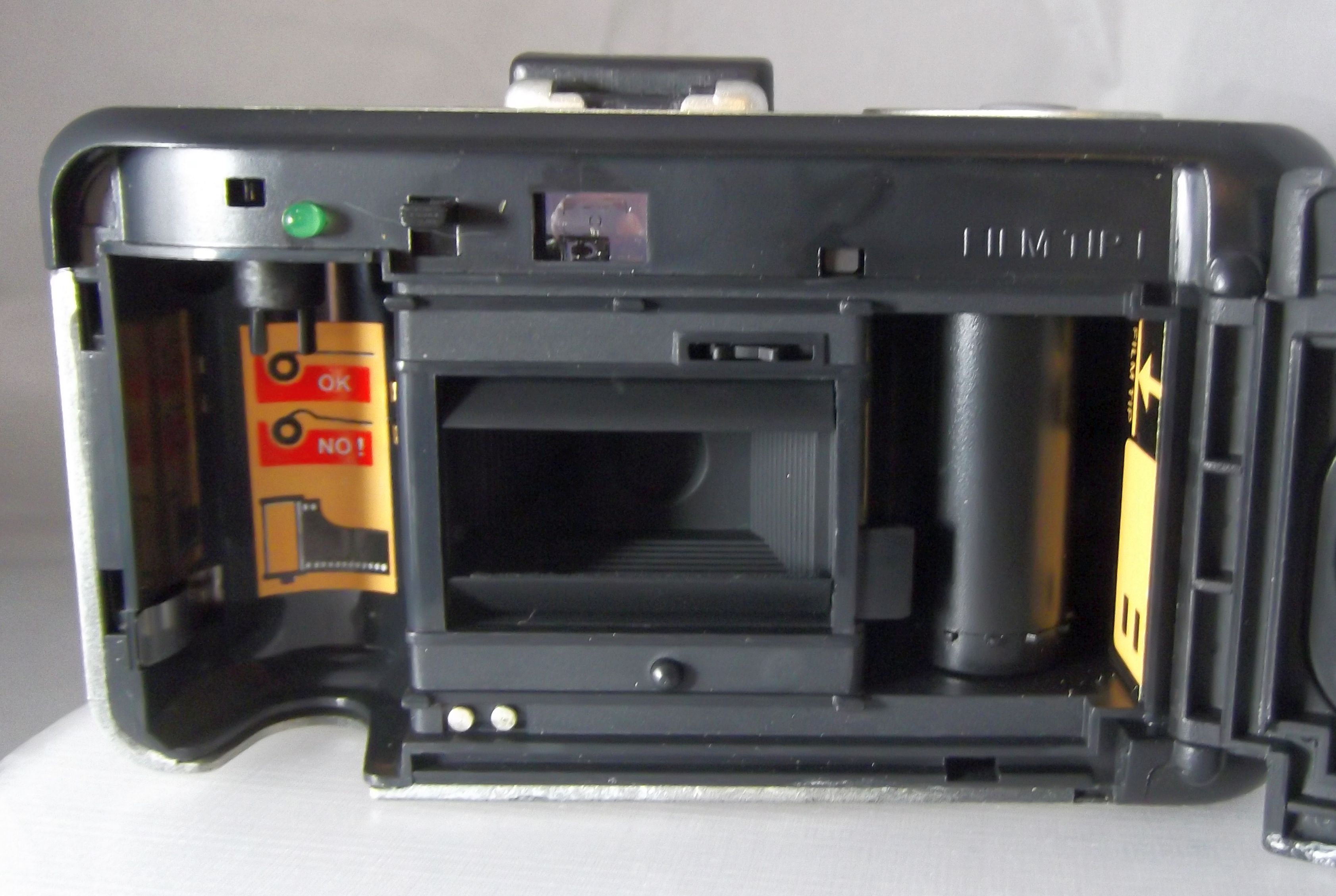 So nun zur Kamera. Hersteller : Panorama ? Typ: Kompaktkamera Filmtyp: 35mm Patrone Blende :4,5- ? Automatisch Verschlusszeit: Automatisch Belichtungsmesser: Vermutlich ja Blitz: Einstellbar auf: Aus, Aufhellen, Gegenlicht und Nachtaufnahme Fokus: Einstellbar auf : Macro, Portrait, Gruppe, Landschaft ( unendlich) und Schnappschuß Stromversorgung; Kamera 2 x AA Batterien, Rückenteil 3V CR2025 Selbstauslöser: ja Bildzähler: ja Optik verschließbar Elektronische Rückwand Stativgewinde Panoramaeinstellung: Der kleine hebel neben dem Sucher, stellt man ihn auf P ( ich denke für Panorama) wird die Belichtungsfläche verschmälert, im Sucher sind dafür zwei gleichzeitig erkennbare Lichtramen.