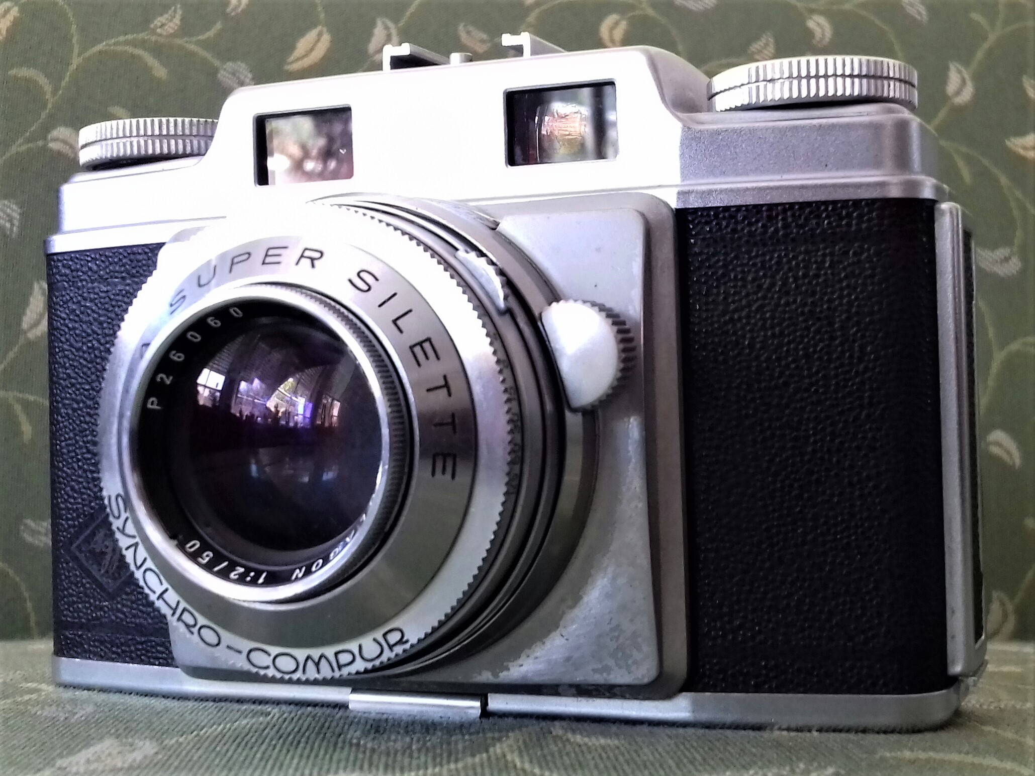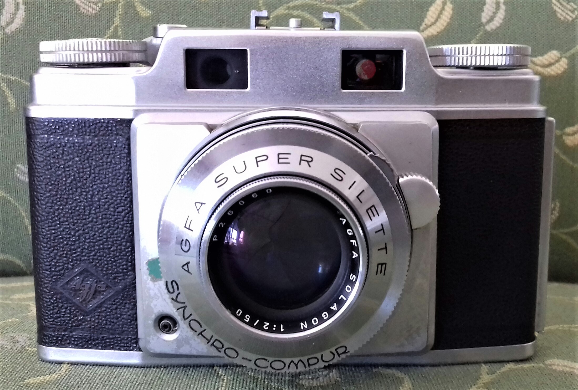 Diese Agfa „Super Silette“ ist eigentlich keine besonders aufregende Kleinbildkamera der 50er-Jahre, wäre da nicht die Optik. Dieses Modell ist mit einem sechslinsigen, sehr lichtstarken und vergüteten „Solagon“ ausgestattet und stellt damit vom Objektiv her den Höhepunkt der „Silette“-Reihe dar.