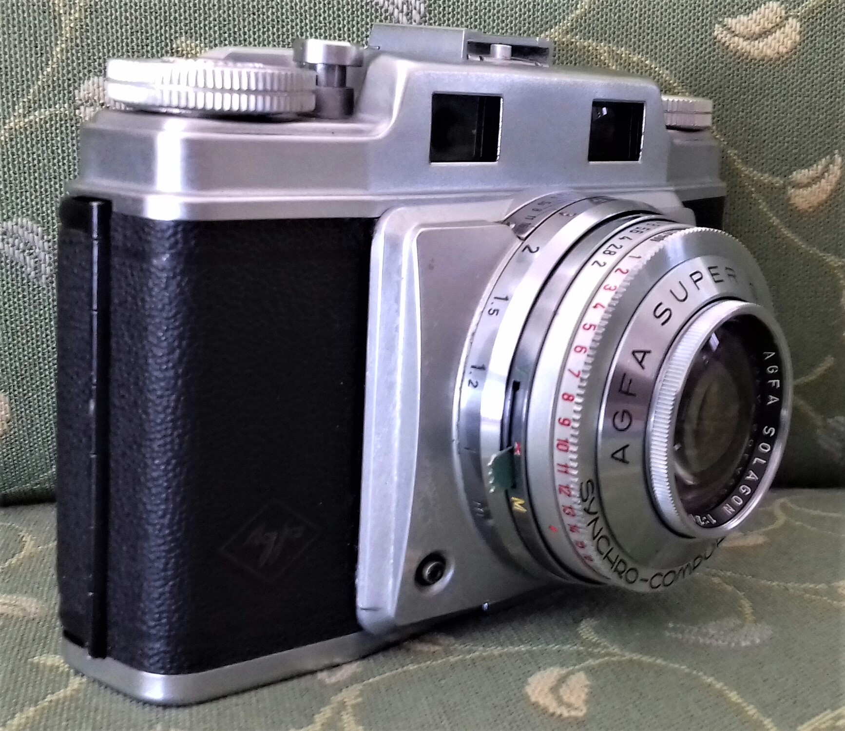 Die Kamera ist schön, handlich und leicht. Blickt man in das hochwertige, violett schimmernde Objektiv, wirkt es, als schaute man in einen tiefen Bergsee. Bei meinem Modell fehlt die rote Agfa-Raute zwischen den Sucherfenstern.