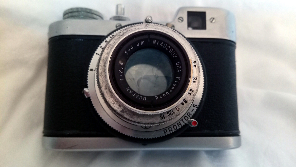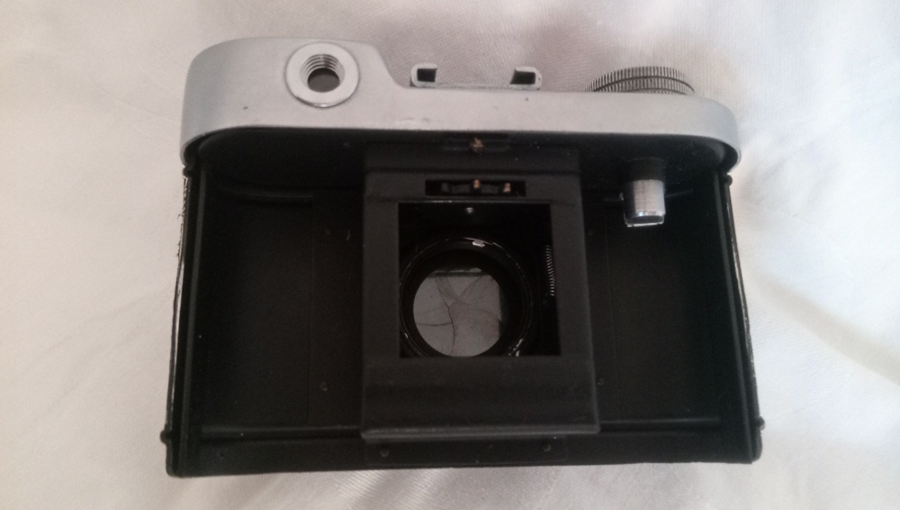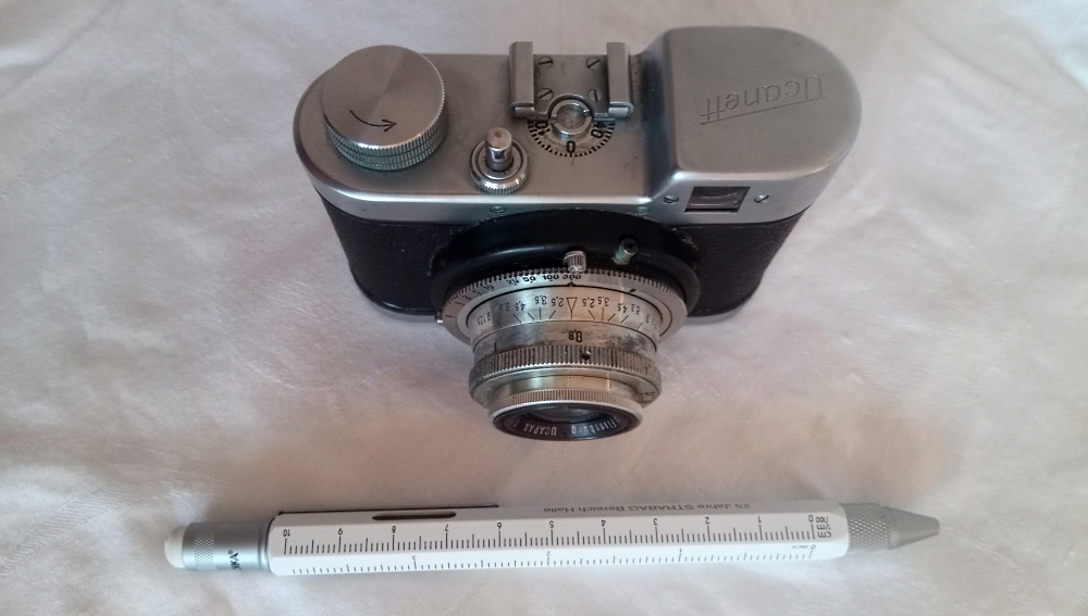 Die Kamera ist hübsch und von sehr gediegener Verarbeitung – erstaunlich, wenn man die zeitlichen Umstände bedenkt. Es gibt auch eine kleine Bereitschaftstasche dazu, die ich noch irgendwo habe. Die seltene Kamera habe ich in den späten 1980ern auf dem Flohmarkt gekauft, eine meiner ersten Sammlerkameras...