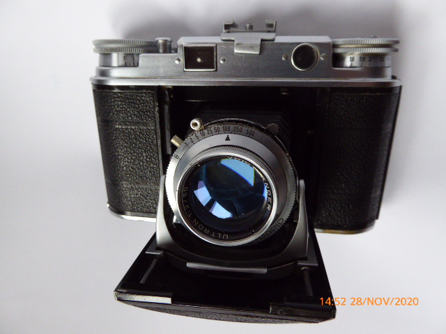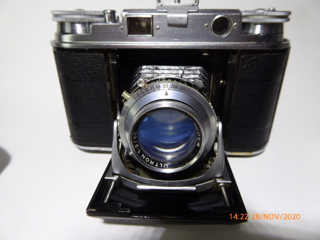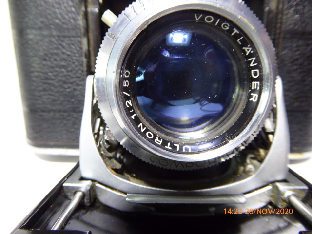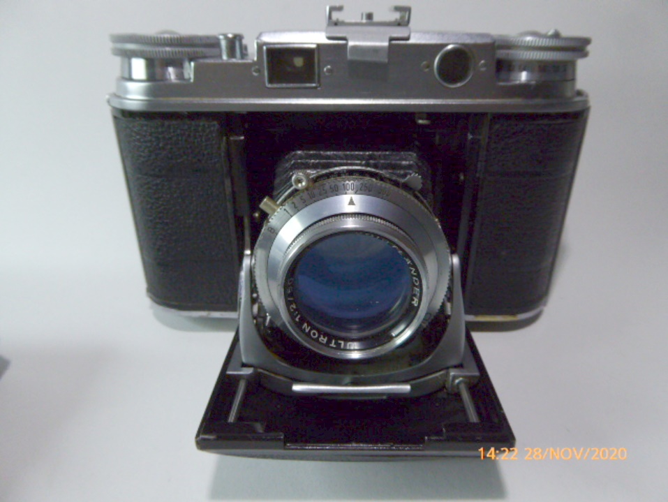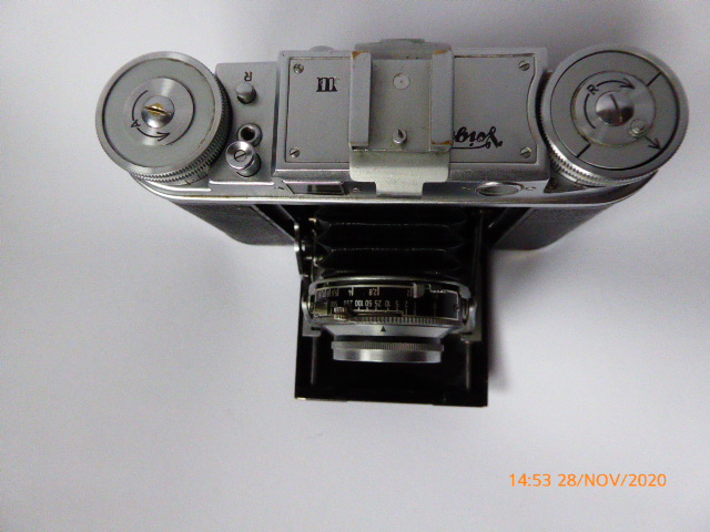 Verwendet wurde anfangs der Verschluss COMPUR-RAPID, später nur mehr der SYNCHRO-COMPUR. Egal, so ist eine Voigtländer VITO III in die Sammlung gekommen.Liebe auf den ersten Blick. (Wie meine frühere Freundin in der gleichen Klasse, die jetzt 51 Jahre meine Frau ist.)