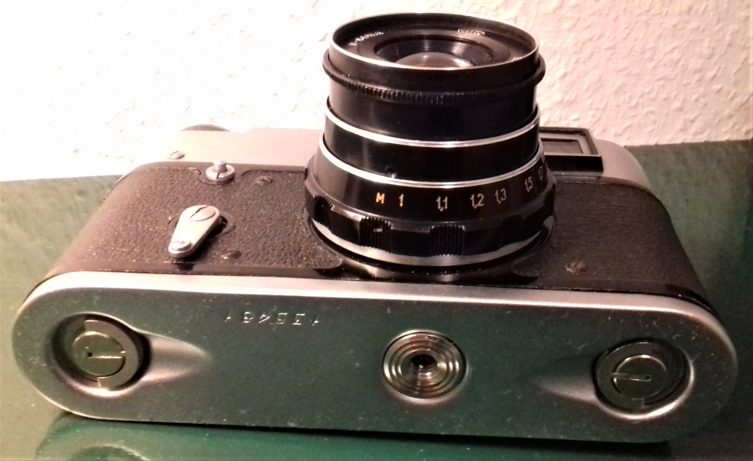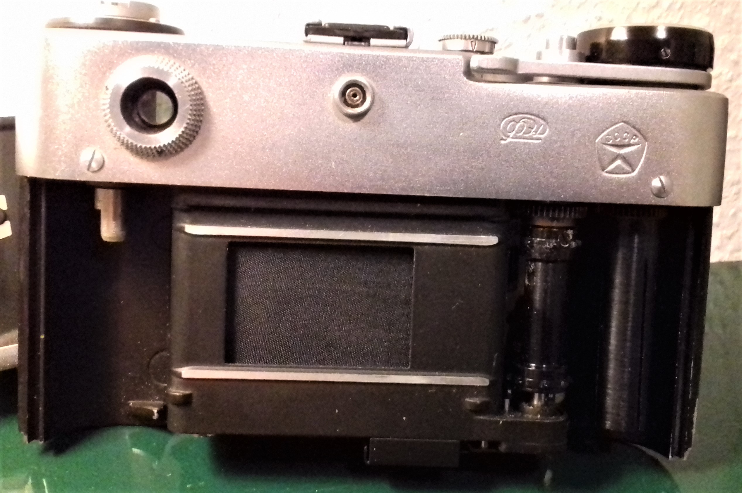 die Kamera ist einer der Nachfolger der FED 5 mit eingebautem, nicht gekuppelten Selen-Belichtungsmesser. Die Klebstoffreste im Bildzähler-Fenster hat man beibehalten :-)