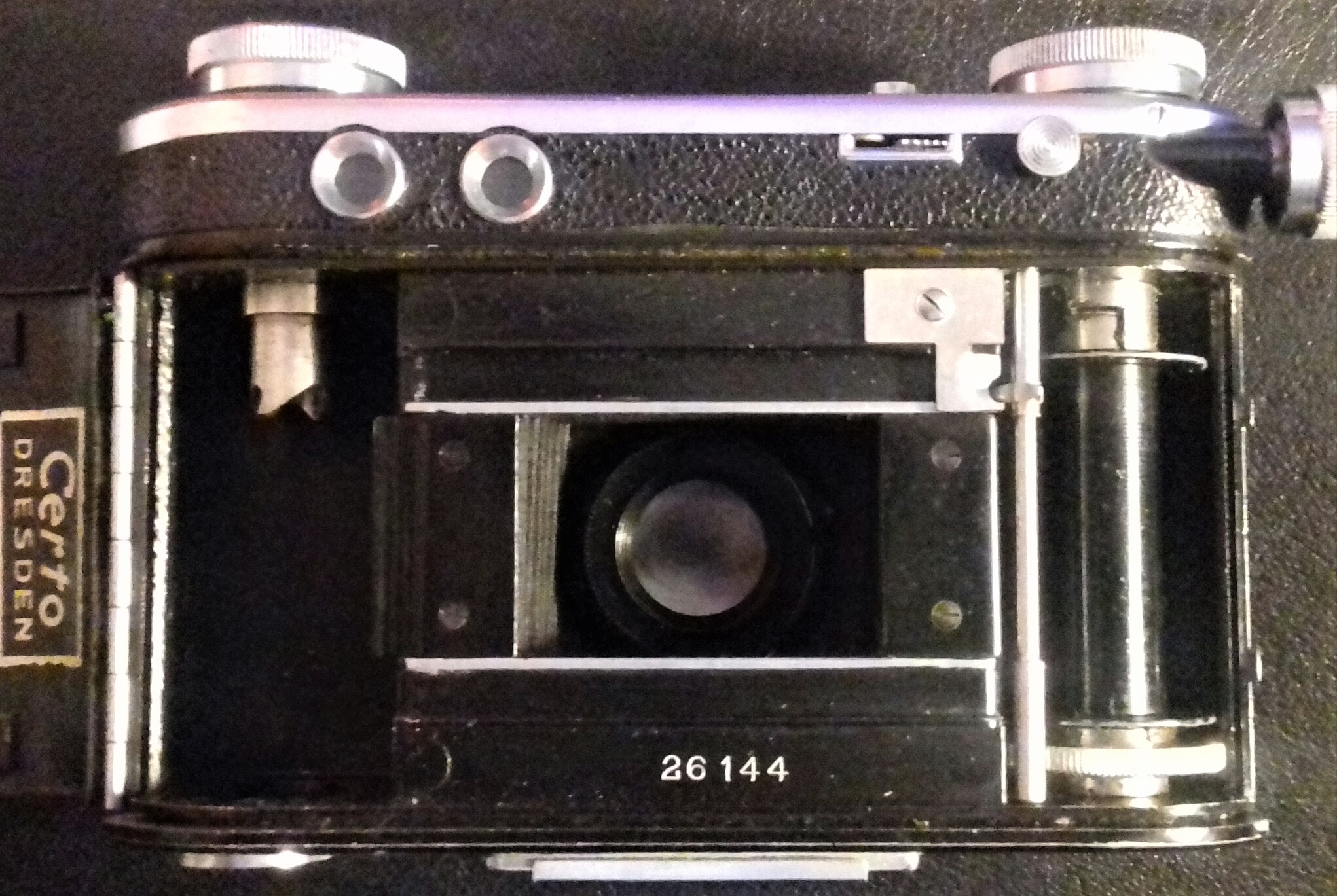 • Baujahr: 1938 • Hersteller: Certo Kamera-Werk, Dresden • Format: KB (24 x 36 mm) • Objektiv: unvergütetes Schneider Kreuznach „Xenar“ (2,8 / 50) • Blenden: 2,8 bis 16 • Verschluss: Compur Rapid • Belichtungszeiten: T, B, 1, 1/2, 1/5, 1/10, 1/25, 1/50, 1/100, 1/250, 1/500 Sek. • Fokussierung: manuell (Mikrometer-Schraube rechts, gesamtes Objektiv fährt auf Schiene im Objektivdeckel, zugl. gekuppelter Entfernungsmesser), 0,9 m bis ∞ • Entfernungsmessung: gekuppelter Mischbild-Entfernungsmesser • Blitz: Synchronkontakt, aber kein Zubehörschuh • Auslöser: Gehäuseauslöser (+ Drahtauslöser-Gewinde am Objektiv) • Belichtungsmesser: --- • Filmzählwerk: Skala auf der Oberseite (stellt sich beim Öffnen der Kamera automatisch auf 0) • Sucher: Durchsichtsucher und zweites Fenster für Entfernungsmessung • Filmtransport: Rändelschraube rechts • Zeitauslöser: --- • Filmtyp-Merkscheibe: --- • Rückspulmechanismus: Druckknopf zur Entriegelung auf der Rückseite und Rändelschraube auf der Oberseite • Sonstiges: Doppelbelichtungssperre, Filmandruckplatte, Tiefenschärfetabelle, Ösen für Tragegurt, ausklappbarer Standfuß • Zubehör: Bereitschaftstasche, Filter u.a.