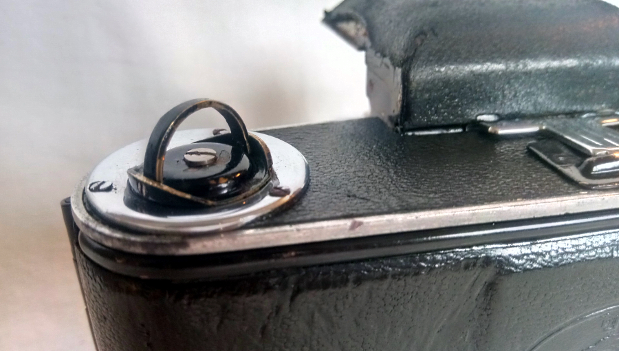 Auch die Beirette I besaß diesen Auslösehebel noch (in etwas schmalerer Form), der Hebel war aber nun mit einem Gehäuseauslöser verbunden.