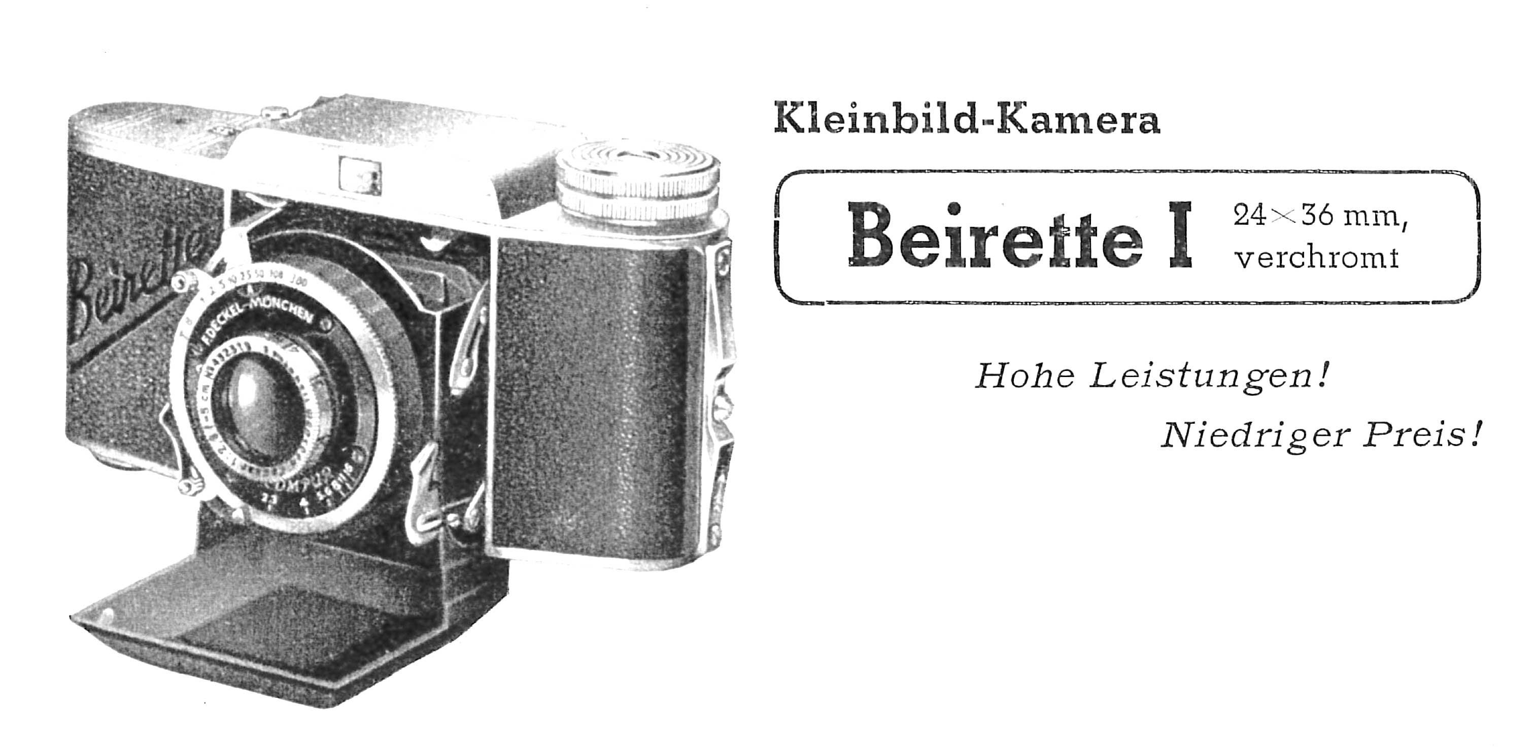Das obige Exemplar ist eigentlich eine „Beirette I“, also bereits die Weiterentwicklung der „Beirette“ (Ur-Beirette). Die Beirette I wurde 1940/41 gemeinsam mit der Beirette II (mit Entfernungsmesser) eingeführt.