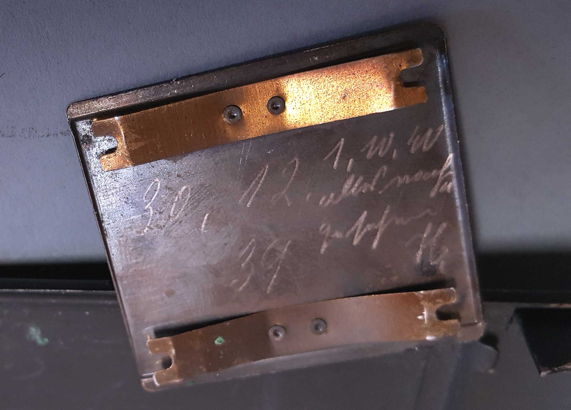 Dieses Exemplar lässt sich auch sehr exakt Datieren: Auf der Filmandruckplatte ist rückseitig das Herstellungsdatum „30.12.39“ vermerkt. Außerdem wurde am „1.10.40“ nochmal „alles nachgesehen“.