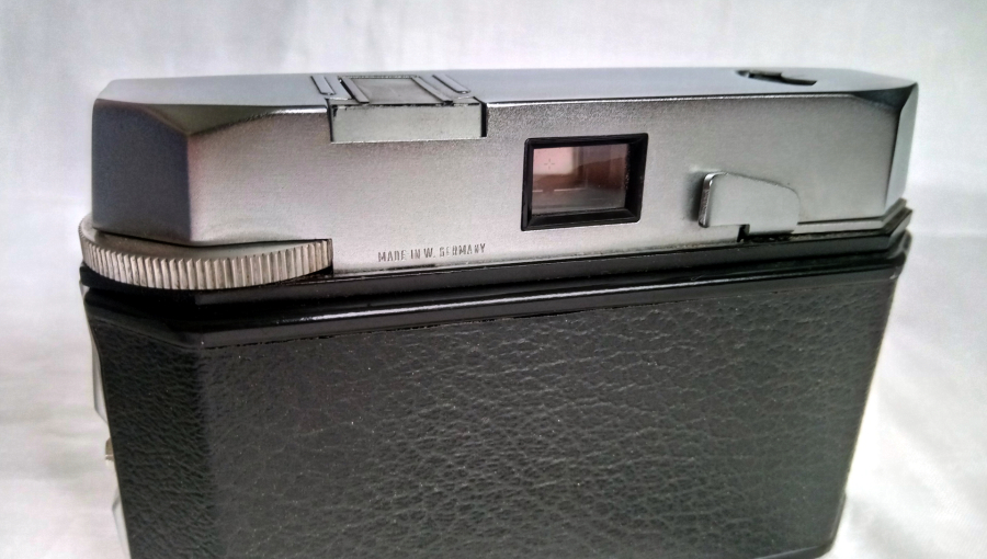 Objektiv ist ein Steinheil Cassar 2,8/45 mm. (2,8 bis 22) Verschluss Prontor 250, Zeiten B, 30, 60, 125 und 250. Es gab sie auch mit Selbstauslöser. Zubehörschuh und Kabelanschluss (rechts unten)