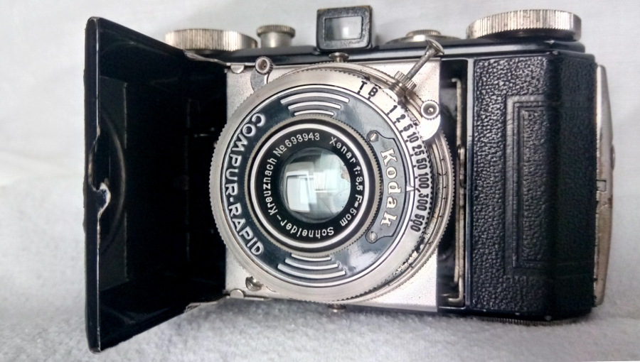 hier die erste Version der Retina Reihe von Kodak – Nagel Werk Stuttgart für das Format 24 x 36mm in der von Kodak eingefühten Tageslichtpatrone. Mit ihrer soliden Konstruktion, den sehr guten verbauten Komponenten (Schneider Xenar Objektiv und Compur Verschluss) und dem guten Preis/Leistungsverhältnis (75 RM mit Compur und 85 RM mit Compur Rapid) verhlalf sie der Kleinbild Fotografie zum Durchbruch. Gebaut wurde diese Version von 1934 bis 1935.