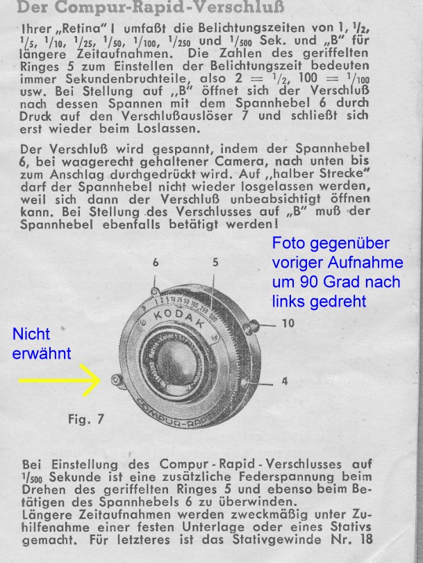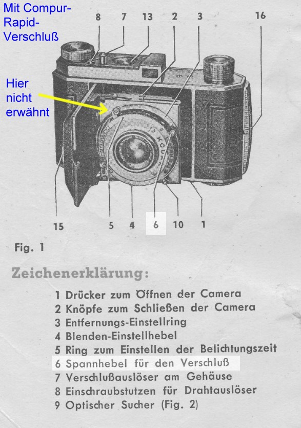 Hoi Rainer, es ist klar, warum er nicht erwähnt ist: Es ist der Auslösehebel des Compur-Verschlusses. Da Dieser bei dieser Kamera mit dem Gehäuseauslöser gekuppelt ist, braucht der Anwender nicht zu wissen, was das ist. Er muss ja nur am Verschluss spannen und am Gehäuseauslöser auslösen. Gruss Freier-Sascha