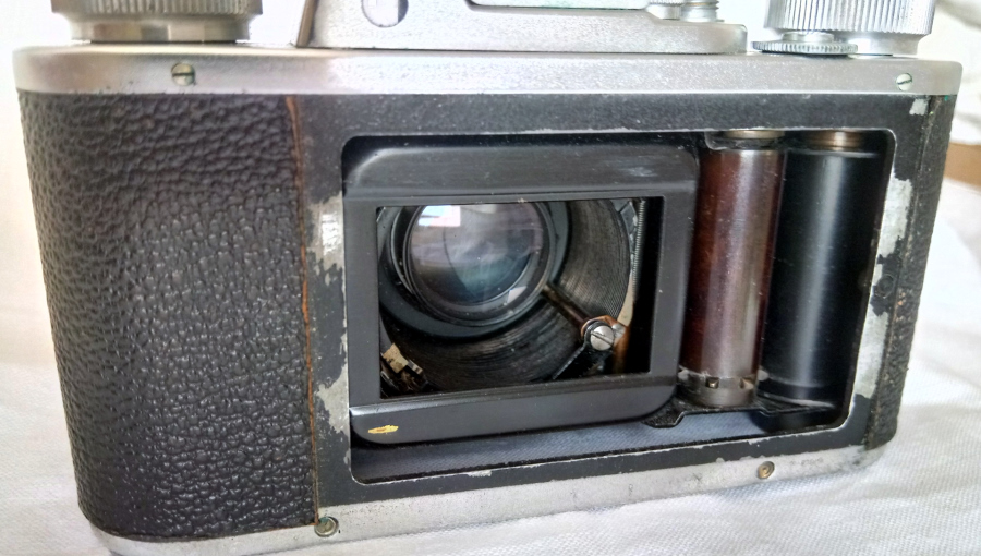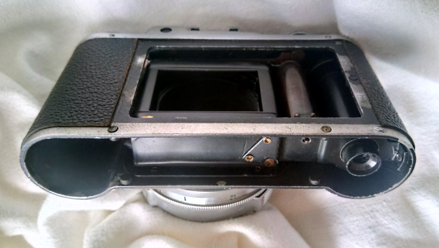 Zum Einlegen des Filmes lässt sich der Boden abschrauben, die Rückwand lässt sich ebenfalls entfernen, was sehr hilfreich ist. An der abnehmbaren Rückwand ist die Filmandruckplatte befestigt.